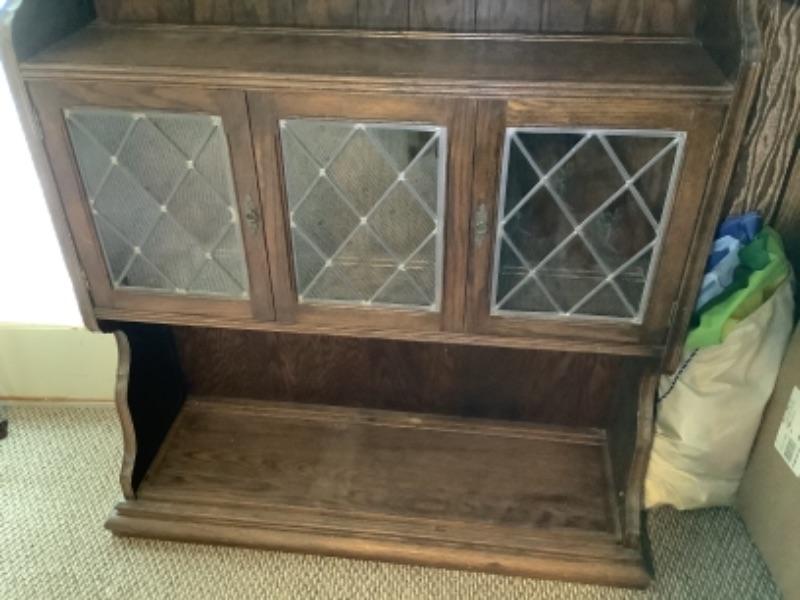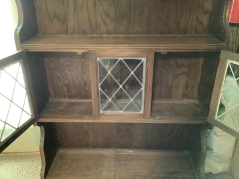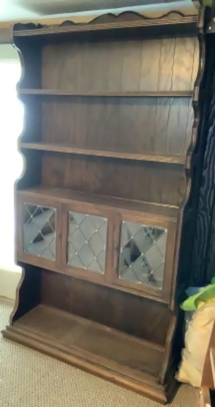 2461 Mediterranean Style Oak Shelving Unit with Lead Glass Doors
