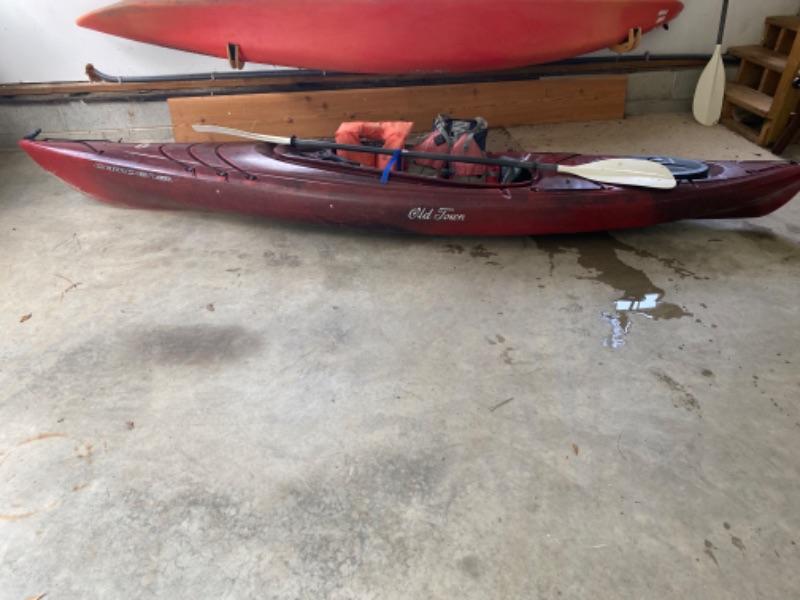 Old Town Camden 120 Kayak with Paddle (maroon in color)