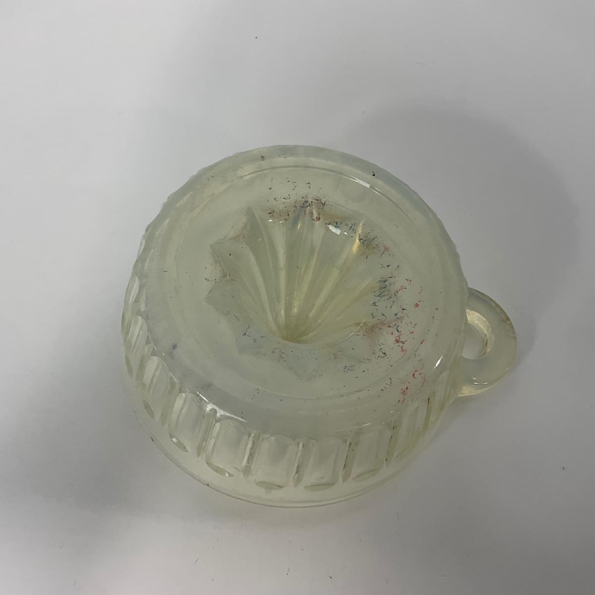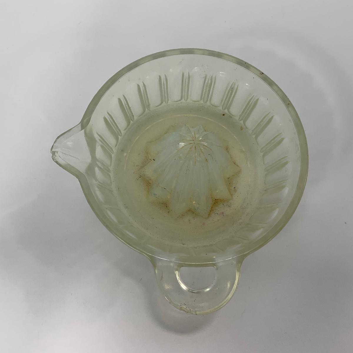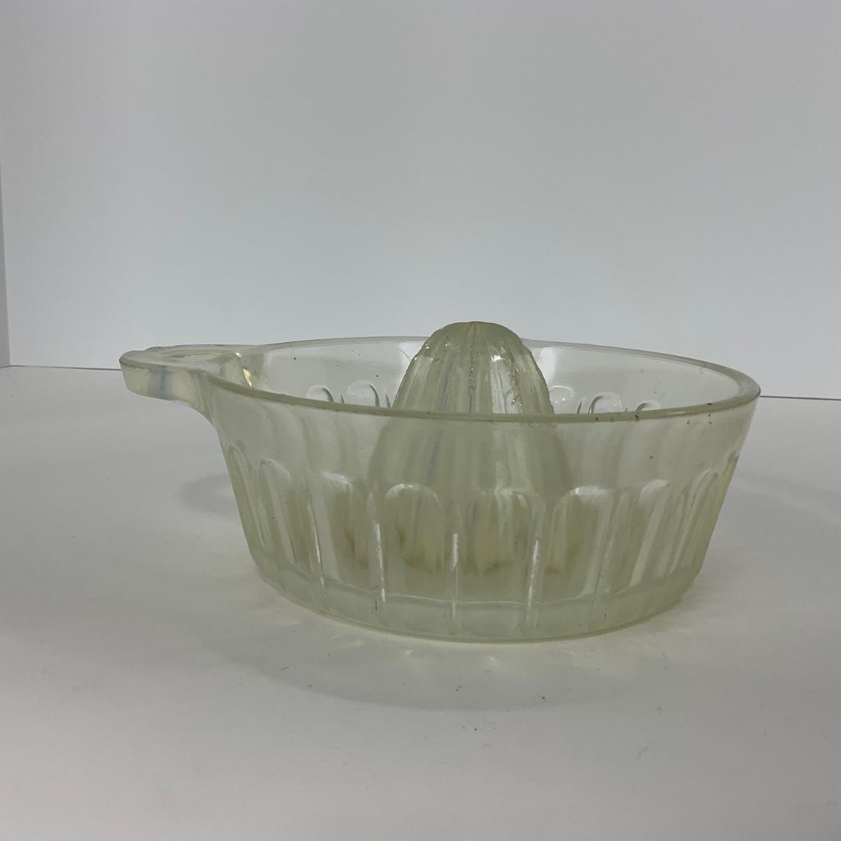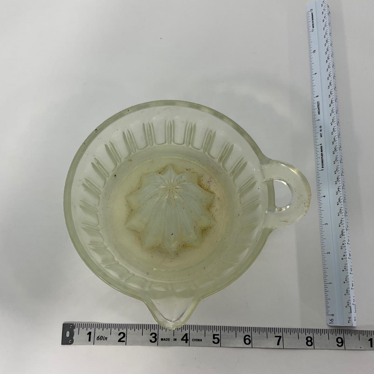 One opalescent large orange reamer. This piece does have a good amount of damage. Please see photos for details and condition. ::: Shipping is available on this lot. If you require shipping you must let us know at the close of the auction. We will coordinate with you after the item has been won. Shipping fees will include insurance up to or exceeding the value of all items being mailed. If you have any questions regarding this lot please contact the auctioneer either via this website, by direct email or by phone. PICK UP TIMES and other important information can be found in the TERMS and DESCRIPTION of the auction. Please take a look for pertinent information. Thanks!