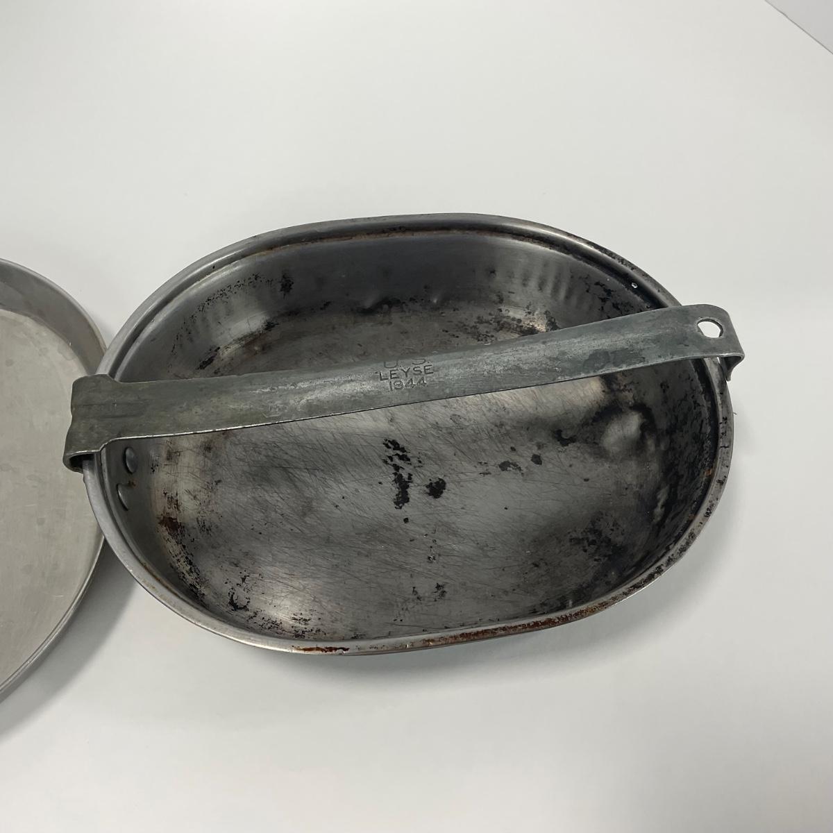 One vintage 1944 military US Army Mess Kit. There is some damage and dents on this piece. Please see photos for details and condition. ::: Shipping is available on this lot. If you require shipping you must let us know at the close of the auction. We will coordinate with you after the item has been won. Shipping fees will include insurance up to or exceeding the value of all items being mailed. If you have any questions regarding this lot please contact the auctioneer either via this website, by direct email or by phone. PICK UP TIMES and other important information can be found in the TERMS and DESCRIPTION of the auction. Please take a look for pertinent information. Thanks!