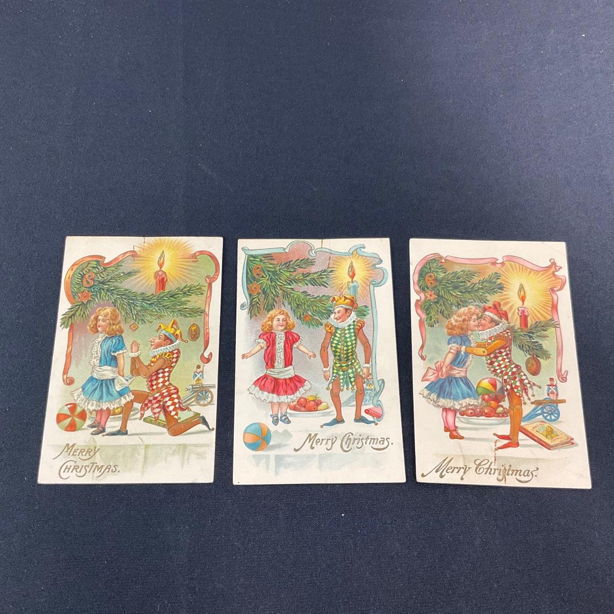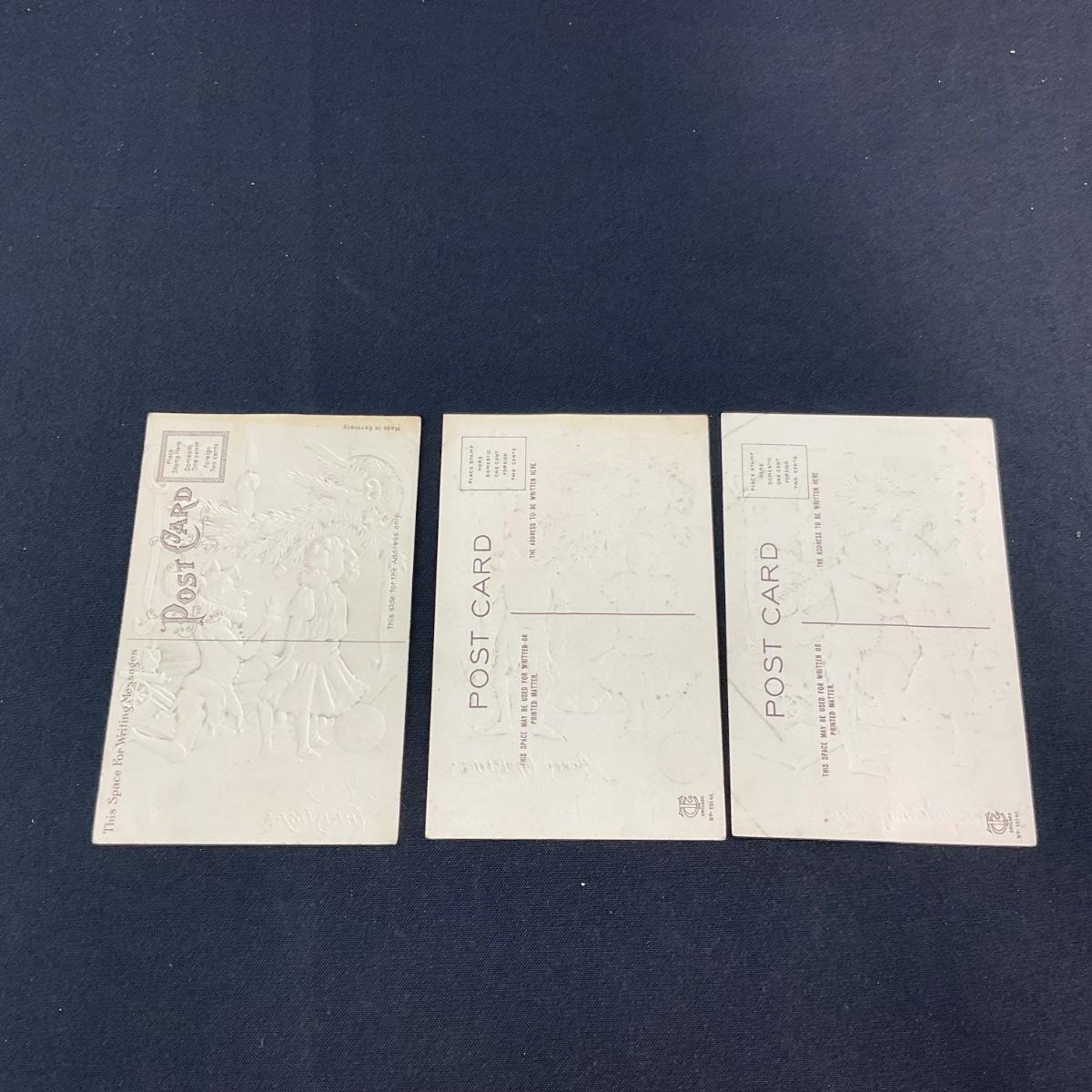 Three assorted Christmas postcards. Please see photos for details and condition. Any condition statement is given as a courtesy to a client, is an opinion, and should not be treated as a statement of fact. Reference to condition written, oral or within a condition report shall not be regarded as a full account of condition and may not include all defects, alterations, or restorations. Absence of a condition report does not imply a lot is flawless or lacking imperfections or damage. Katherine’s Auction & Appraisal Service shall have no responsibility for any error or omission. Returns shall not be accepted on the basis of condition. ::: Shipping is available on this lot. If you require shipping you must let us know at the close of the auction. We will coordinate with you after the item has been won. Shipping fees will include insurance up to or exceeding the value of all items being mailed. If you have any questions regarding this lot please contact the auctioneer either via this website, by direct email or by phone. PICK UP TIMES and other important information can be found in the TERMS and DESCRIPTION of the auction. Please take a look for pertinent information. Thanks!
