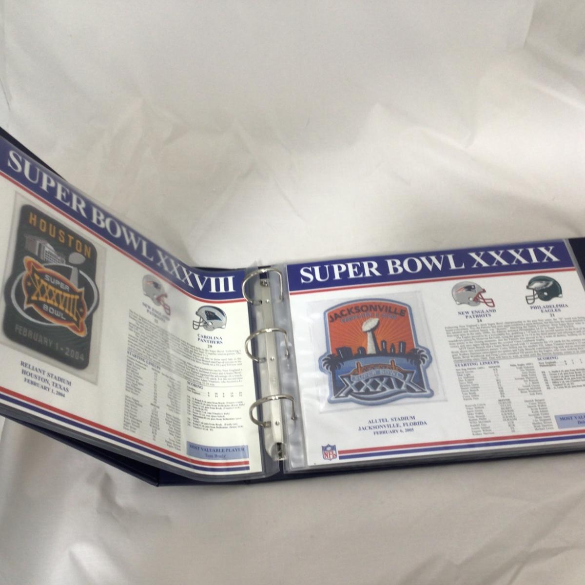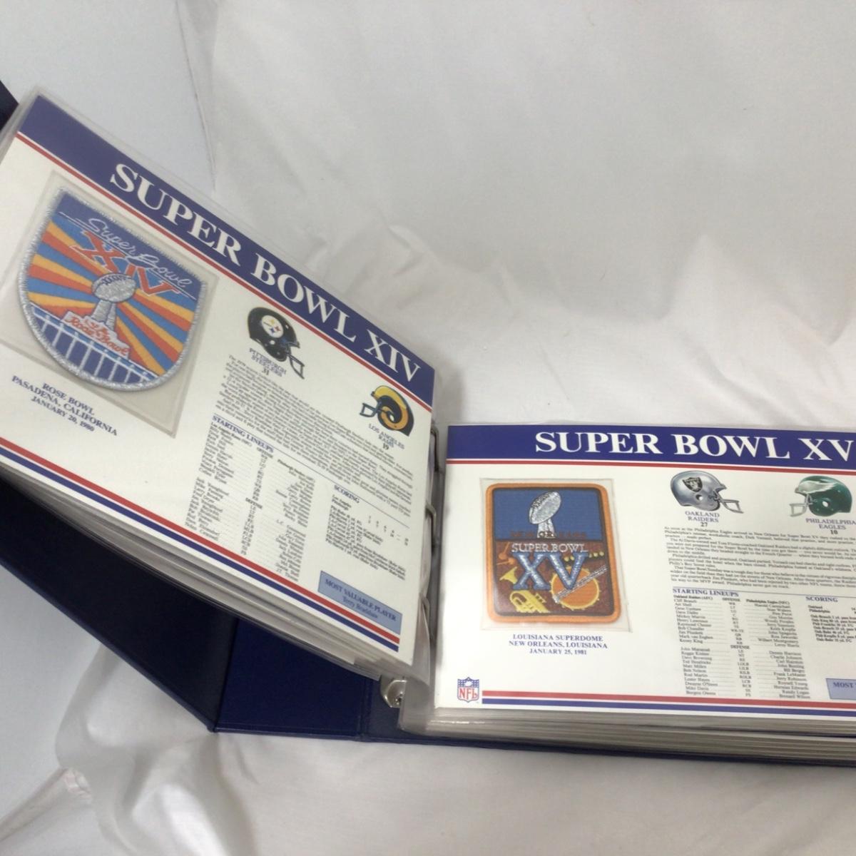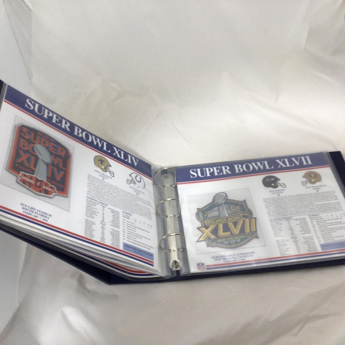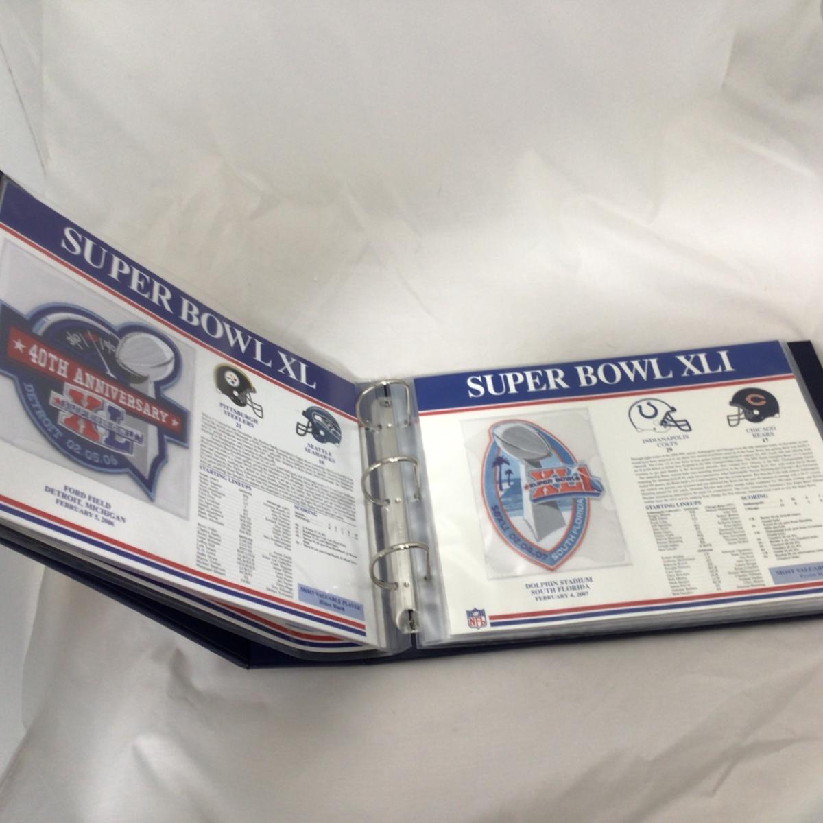 NFL Official Super Bowl patch collection. Please see photos for details and condition. ::: Shipping is available on this lot. If you require shipping you must let us know at the close of the auction. We will coordinate with you after the item has been won. Shipping fees will include insurance up to or exceeding the value of all items being mailed. If you have any questions regarding this lot please contact the auctioneer either via this website, by direct email or by phone. PICK UP TIMES and other important information can be found in the TERMS and DESCRIPTION of the auction. Please take a look for pertinent information. Thanks!