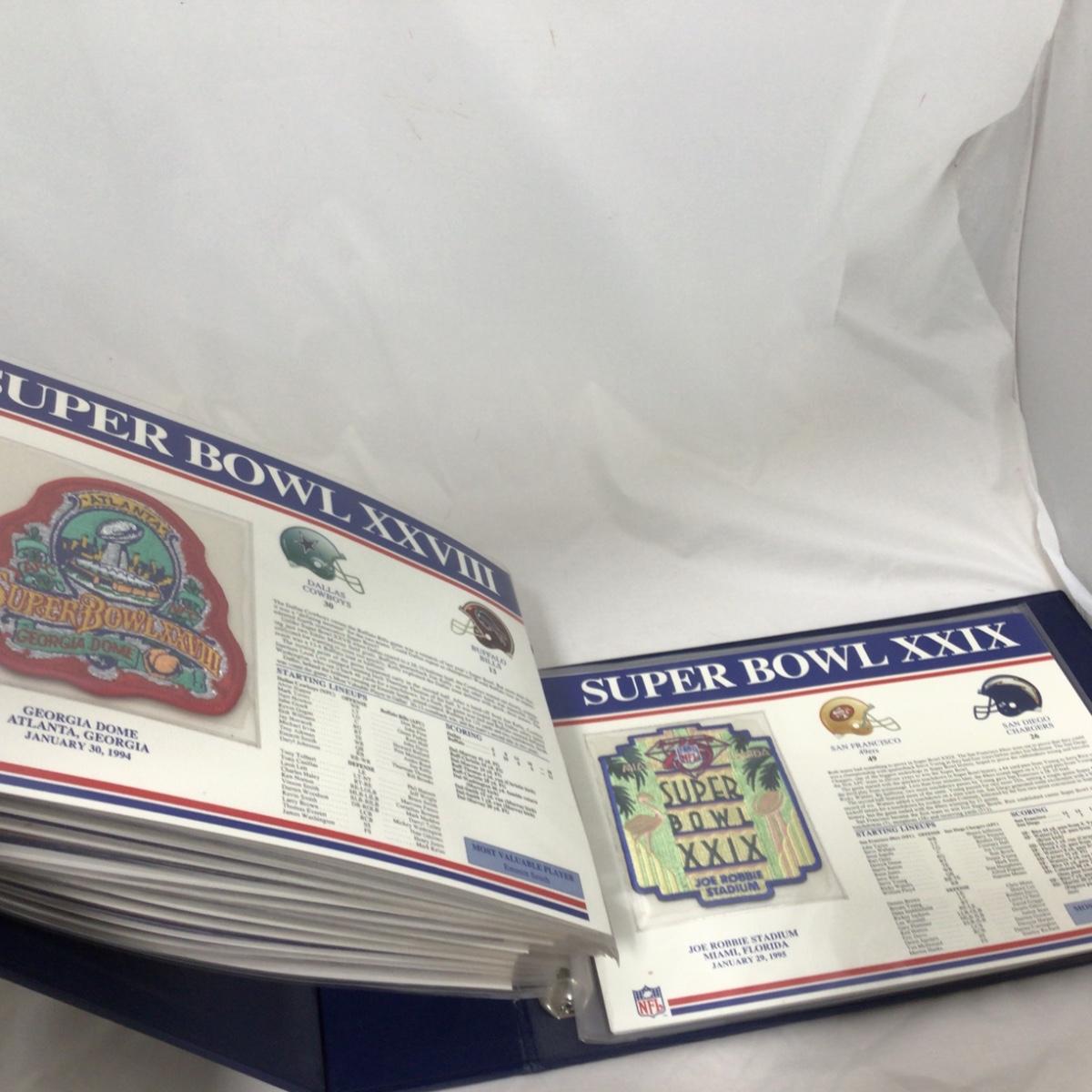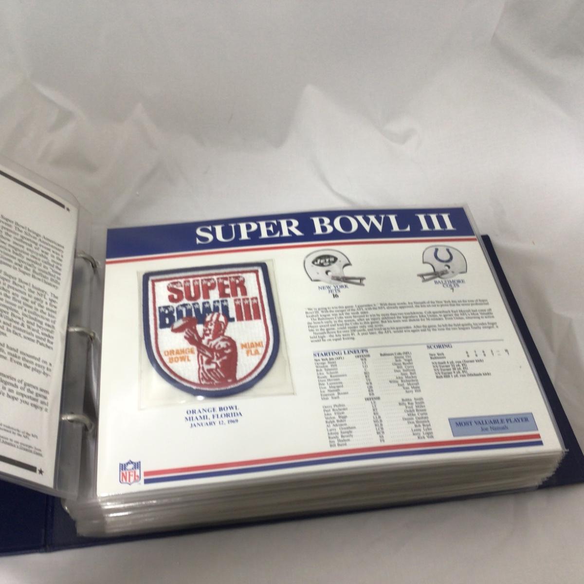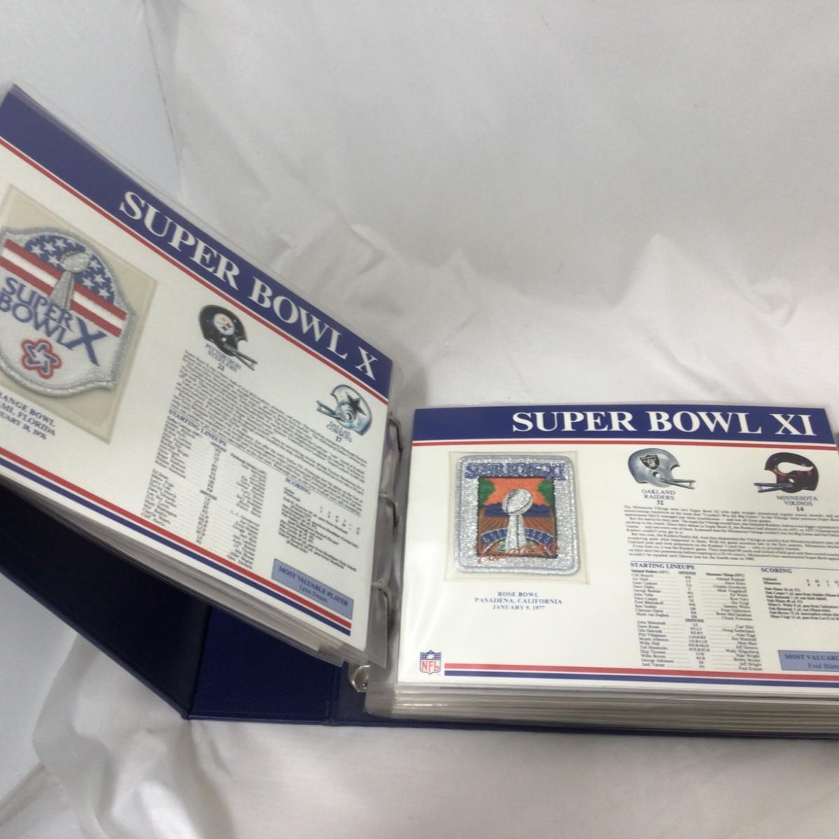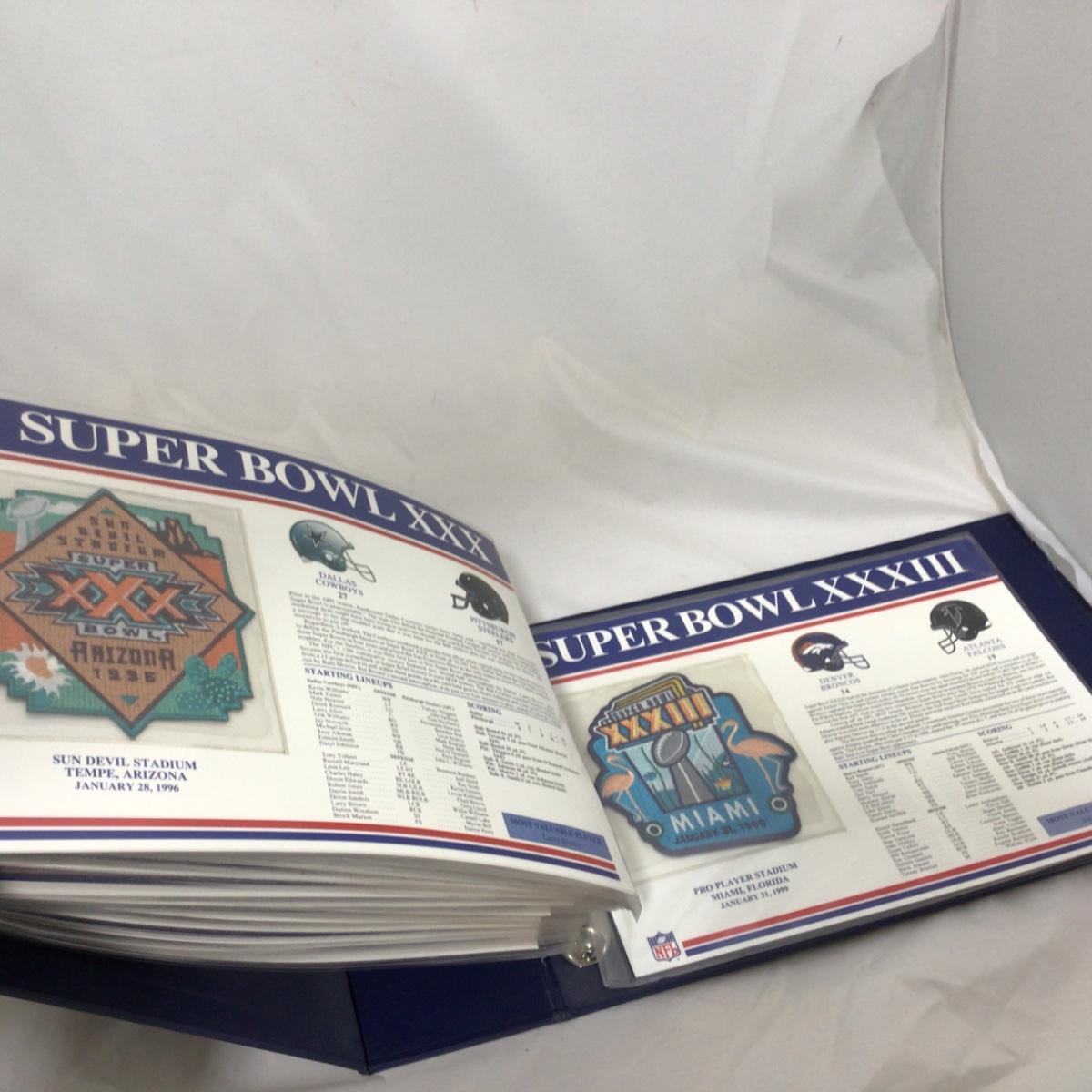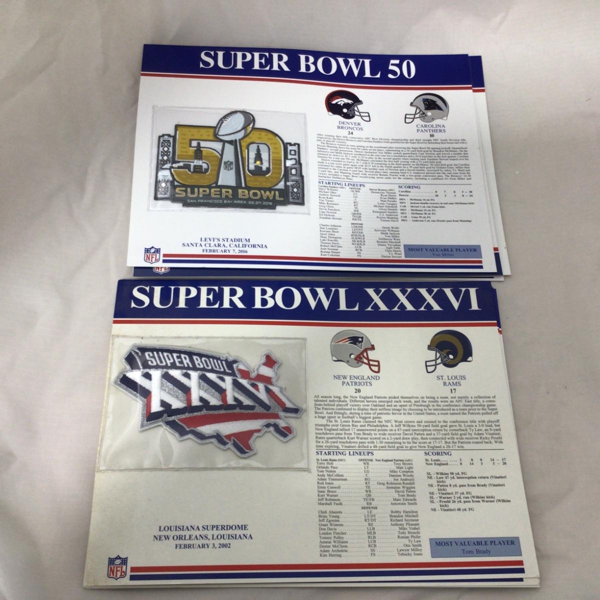 NFL Official Super Bowl patch collection. Please see photos for details and condition. ::: Shipping is available on this lot. If you require shipping you must let us know at the close of the auction. We will coordinate with you after the item has been won. Shipping fees will include insurance up to or exceeding the value of all items being mailed. If you have any questions regarding this lot please contact the auctioneer either via this website, by direct email or by phone. PICK UP TIMES and other important information can be found in the TERMS and DESCRIPTION of the auction. Please take a look for pertinent information. Thanks!