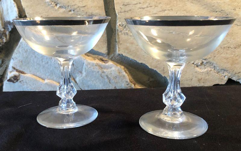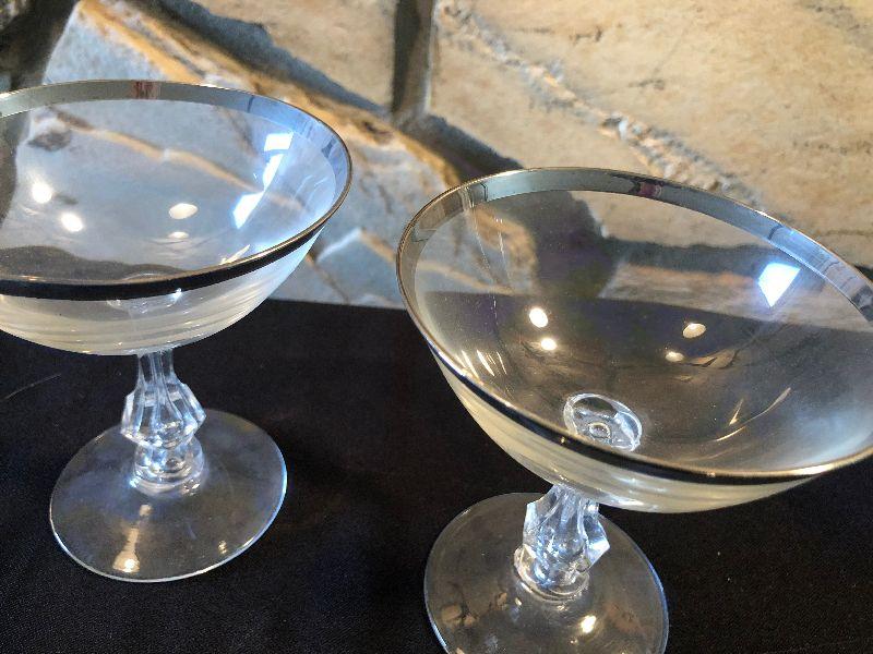 #248 two Silver Rimmed Dorothy Thorpe Martini Glasses