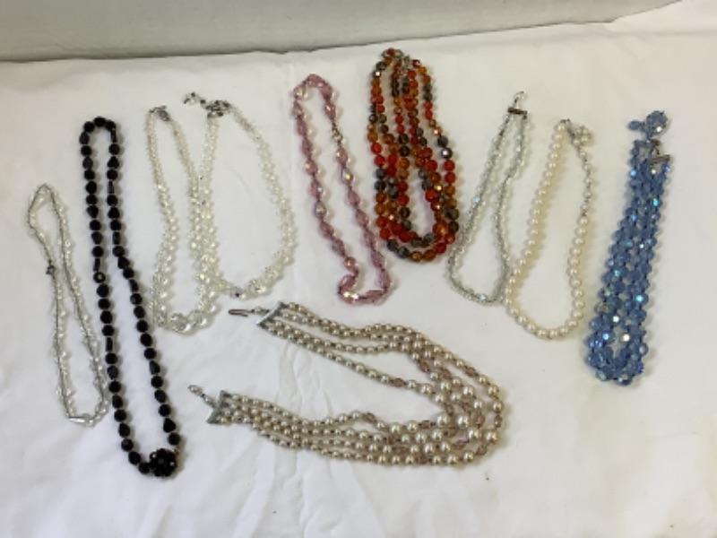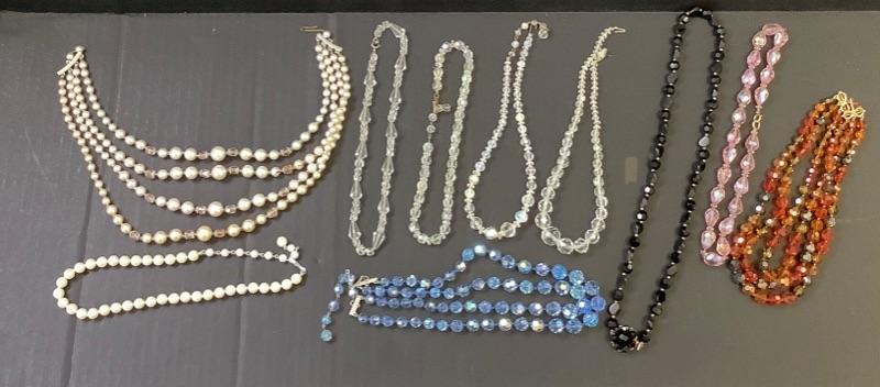 2485 Vintage Costume Jewelry Aurora Borealis Bead Necklaces