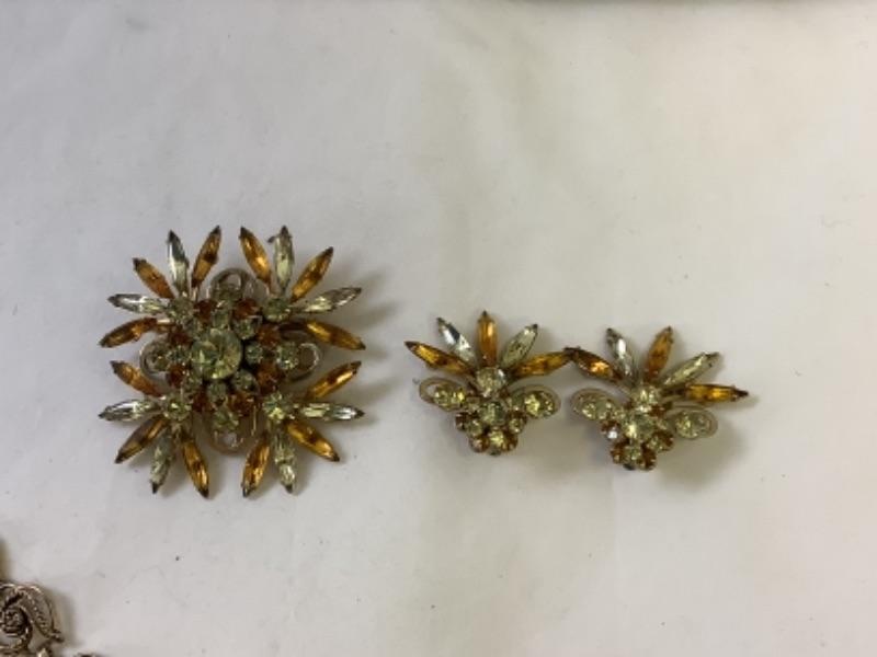 Jewelry sets, clip-on and screw back earrings, bracelets, necklaces and brooches