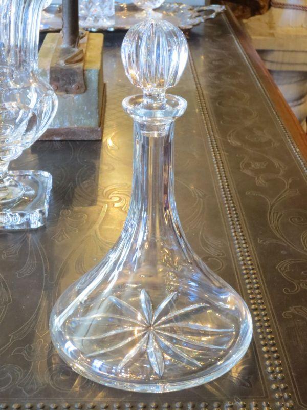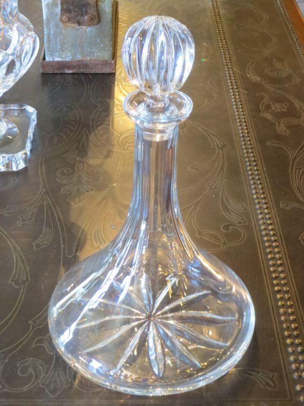 This decanter stands 12" tall and has a diameter of 7.5". The condition is nice without any chips or cracks.