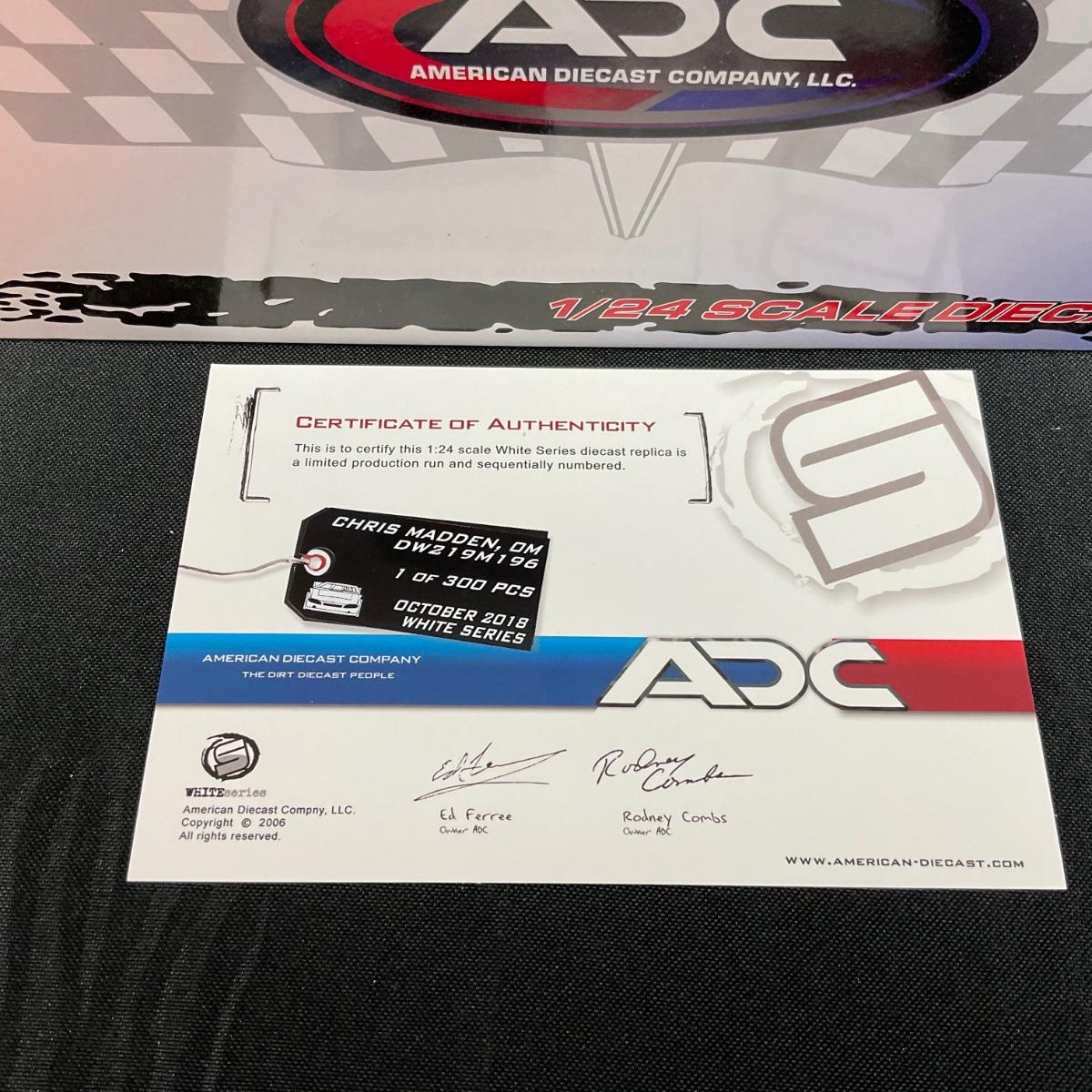 -249- ADC | 1/24 Scale Chris Madden #OM White Series | With COA | New In Box
