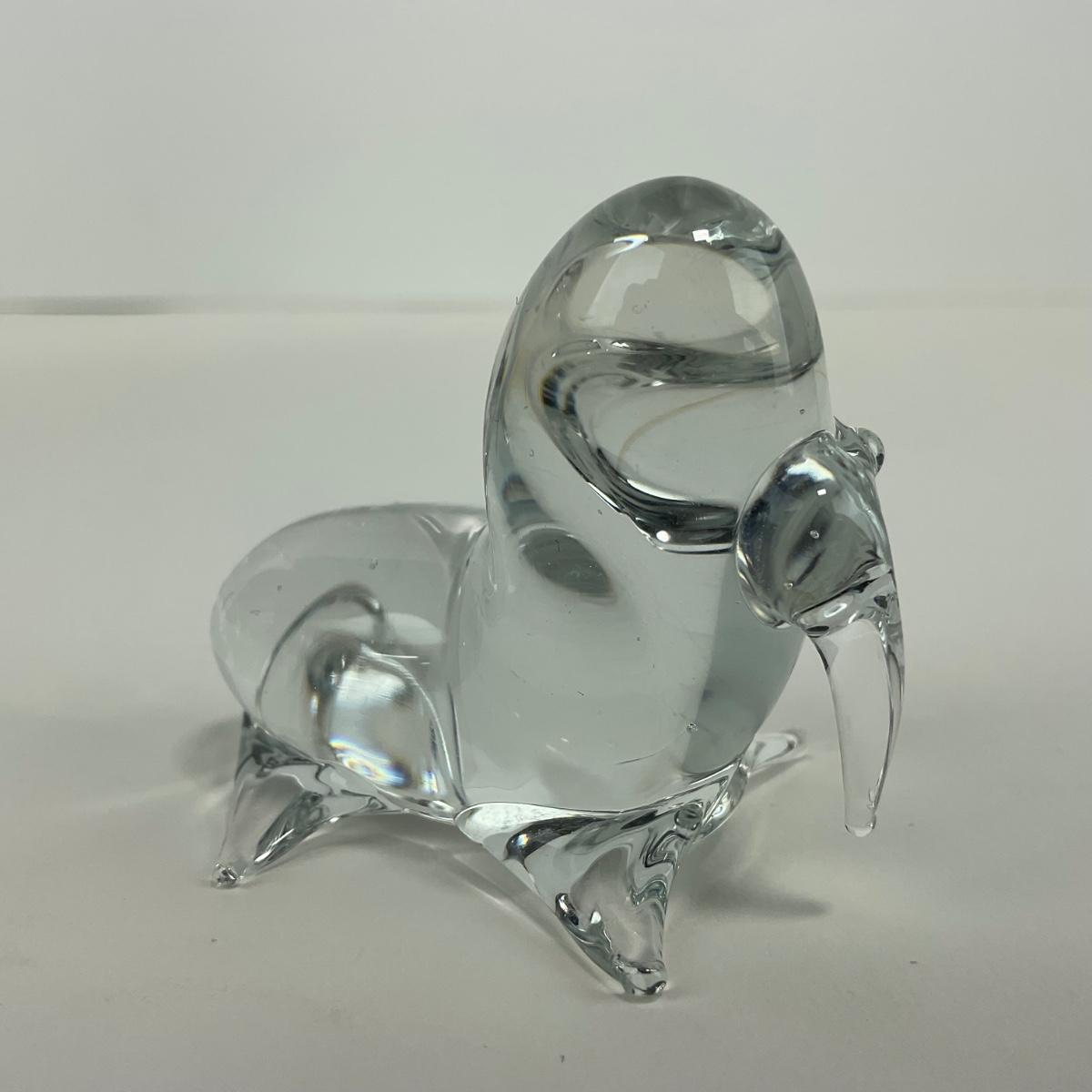Four clear art glass animal figures. One animal is missing its leg, it appears to look like a dog of sorts, one glass pig figure, on glass walrus figure, and one glass owl figure. Please see photos for details and condition. Any condition statement is given as a courtesy to a client, is an opinion, and should not be treated as a statement of fact. Reference to condition written, oral or within a condition report shall not be regarded as a full account of condition and may not include all defects, alterations, or restorations. Absence of a condition report does not imply a lot is flawless or lacking imperfections or damage. Katherine’s Auction & Appraisal Service shall have no responsibility for any error or omission. Returns shall not be accepted on the basis of condition. ::: Shipping is available on this lot. If you require shipping you must let us know at the close of the auction. We will coordinate with you after the item has been won. Shipping fees will include insurance up to or exceeding the value of all items being mailed. If you have any questions regarding this lot please contact the auctioneer either via this website, by direct email or by phone. PICK UP TIMES and other important information can be found in the TERMS and DESCRIPTION of the auction. Please take a look for pertinent information. Thanks!