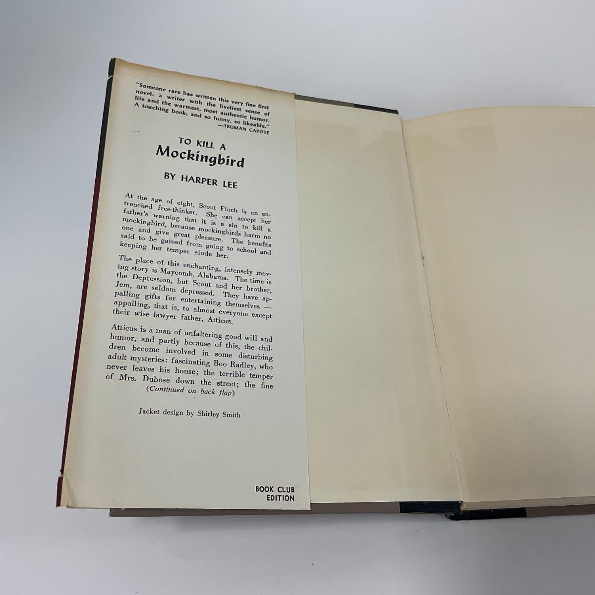 One 1st edition with dust jacket to kill a mocking bird book. This book cover is damaged and has tears and bends. Please see photos for details and condition. ::: Shipping is available on this lot. If you require shipping you must let us know at the close of the auction. We will coordinate with you after the item has been won. Shipping fees will include insurance up to or exceeding the value of all items being mailed. If you have any questions regarding this lot please contact the auctioneer either via this website, by direct email or by phone. PICK UP TIMES and other important information can be found in the TERMS and DESCRIPTION of the auction. Please take a look for pertinent information. Thanks!