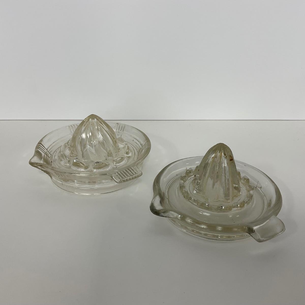 Two Criss Cross Hazel Atlas Glass Co. (1930’s-1950’s) reamers, both do have damage. Please see photos for details and condition. ::: Shipping is available on this lot. If you require shipping you must let us know at the close of the auction. We will coordinate with you after the item has been won. Shipping fees will include insurance up to or exceeding the value of all items being mailed. If you have any questions regarding this lot please contact the auctioneer either via this website, by direct email or by phone. PICK UP TIMES and other important information can be found in the TERMS and DESCRIPTION of the auction. Please take a look for pertinent information. Thanks!