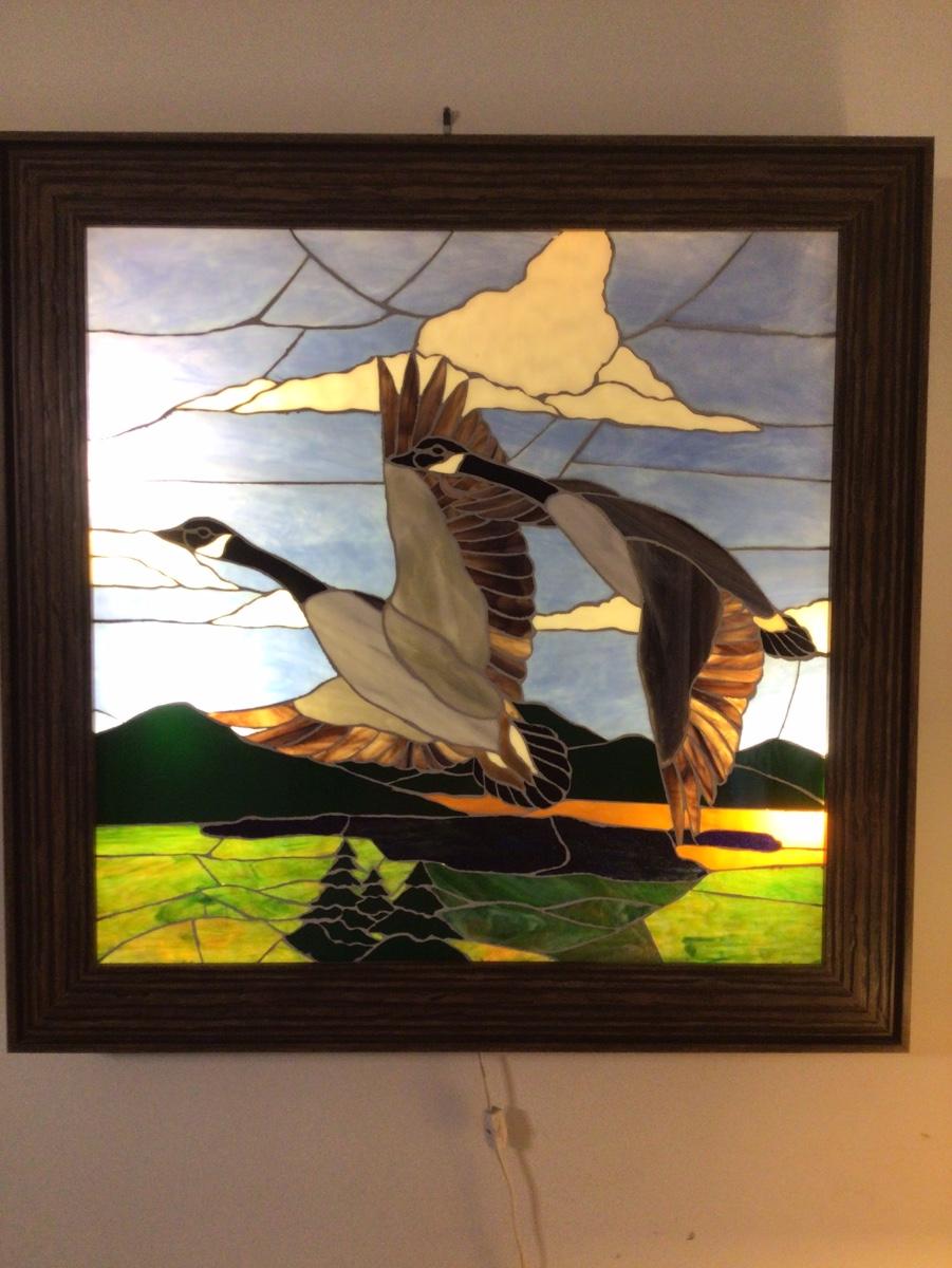 The mosaic is custom made, has an internal lamp to light up the mosaic from the inside, it measures 30” x 30”.