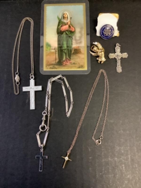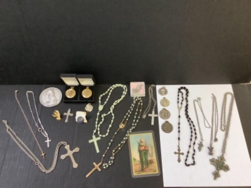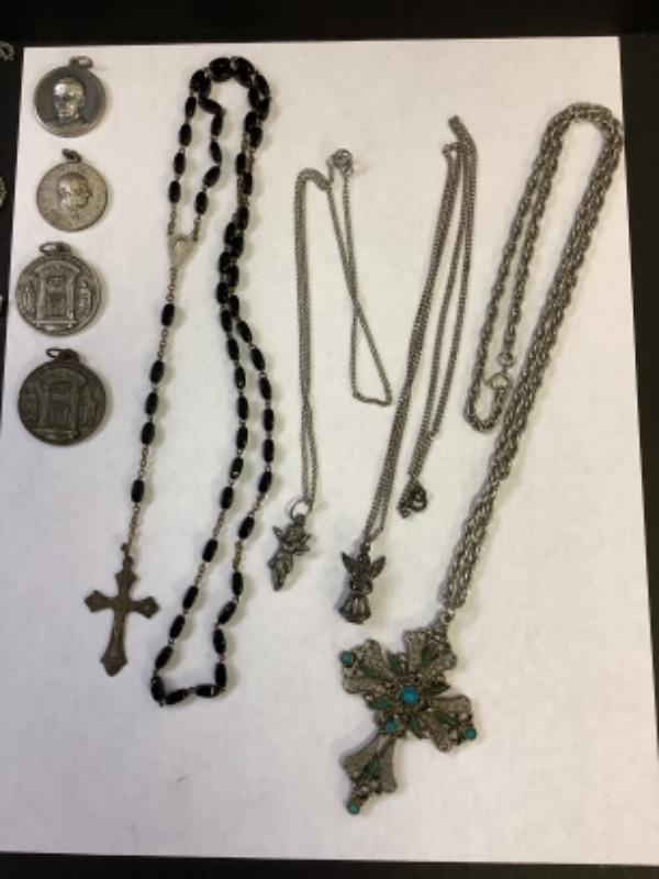 Rosary’s, Cross necklaces, Angel necklaces , Brooches, Dentist’s Prayer Card, Saint Medallions