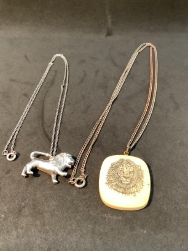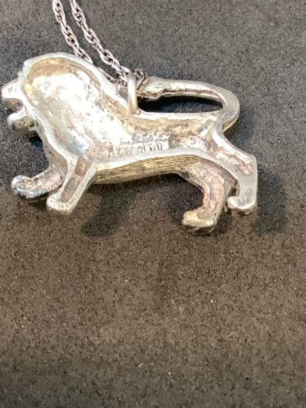 2495 Sterling Silver Lion Necklace Etched Bone Lion Necklace