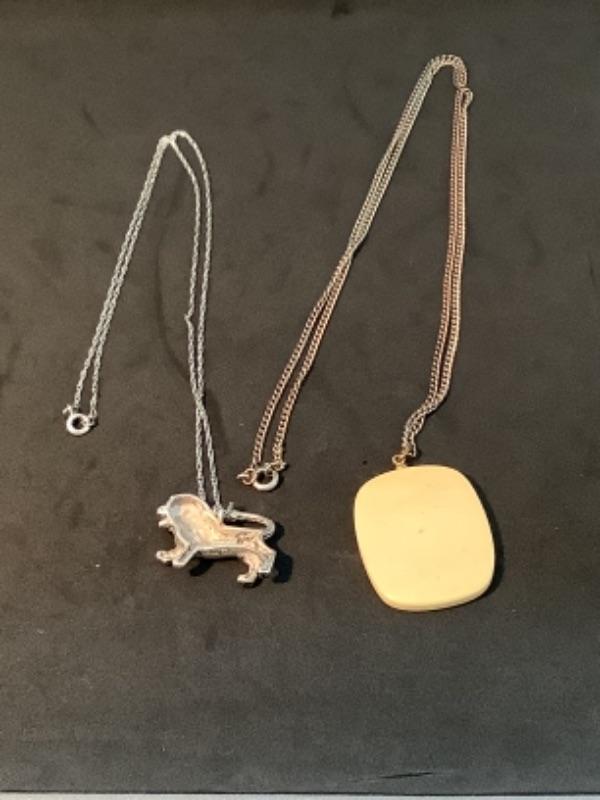 Sterling silver lion necklace, both pendant and chain are sterling silver, etched bone lion necklace, chain is not sterling silver