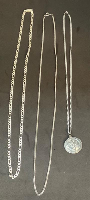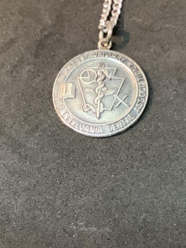 Three sterling silver necklaces, Pennsylvania Dental Association Women’s Auxiliary pendant is not sterling silver