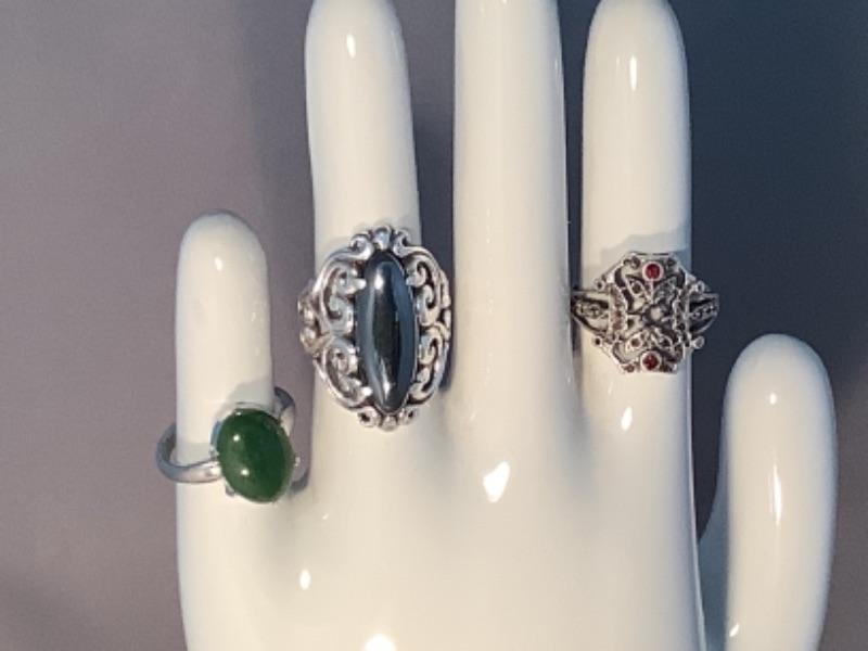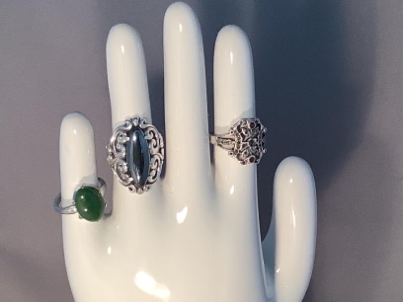 3 sterling silver rings, 1 is missing a stone (see photos)
