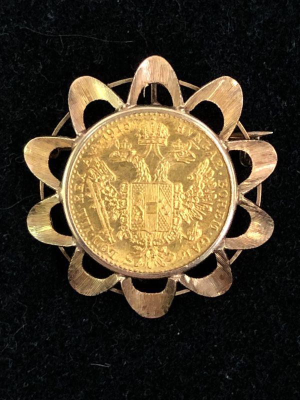 24kt Gold 1915 Austrian Ducat Coin in 14kt mounted pin