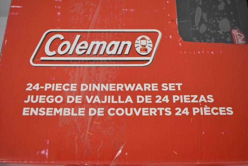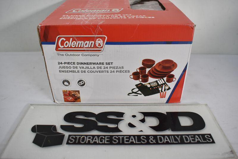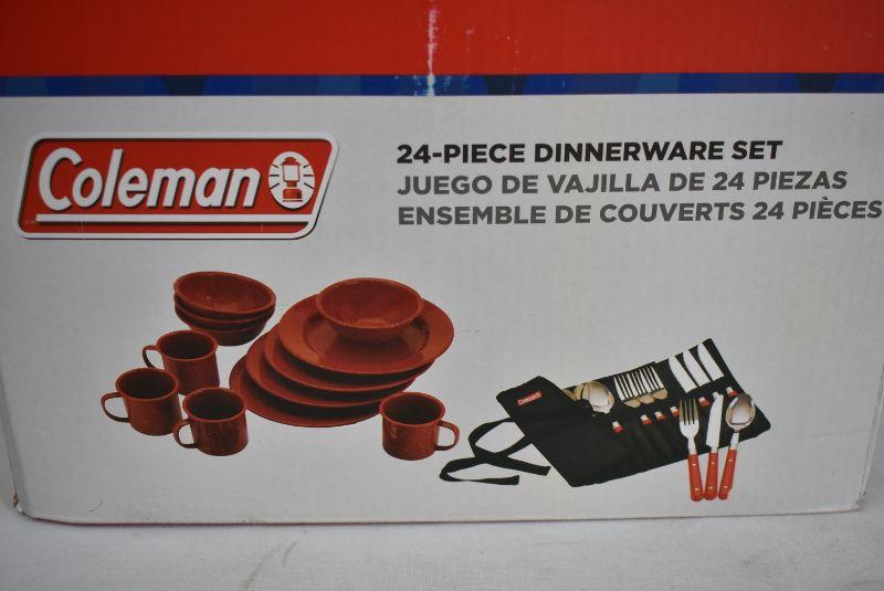 Coleman 24-Piece Enameled Dinnerware & Utensils Set For 4, Red Speckled, $44 Retail - New