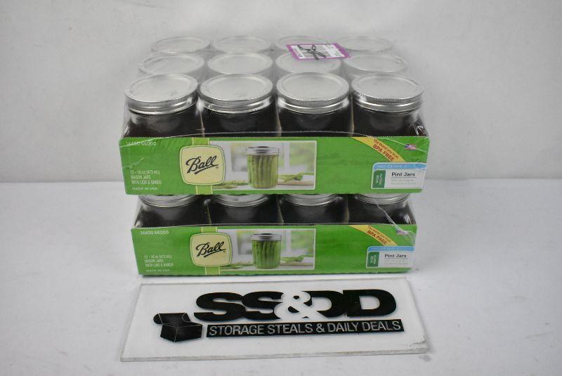 24x Ball Glass Mason Jars with Lids & Bands, Wide Mouth, 16 Ounces - New