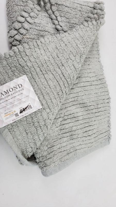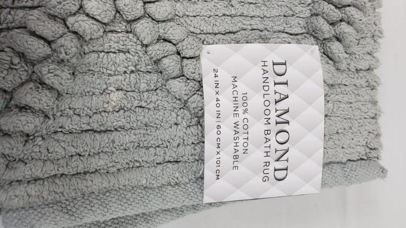 24x40 inch Grey Bath Mat, Diamond Handloom Bath Rug, Tags on/Bleach Spots On Rug