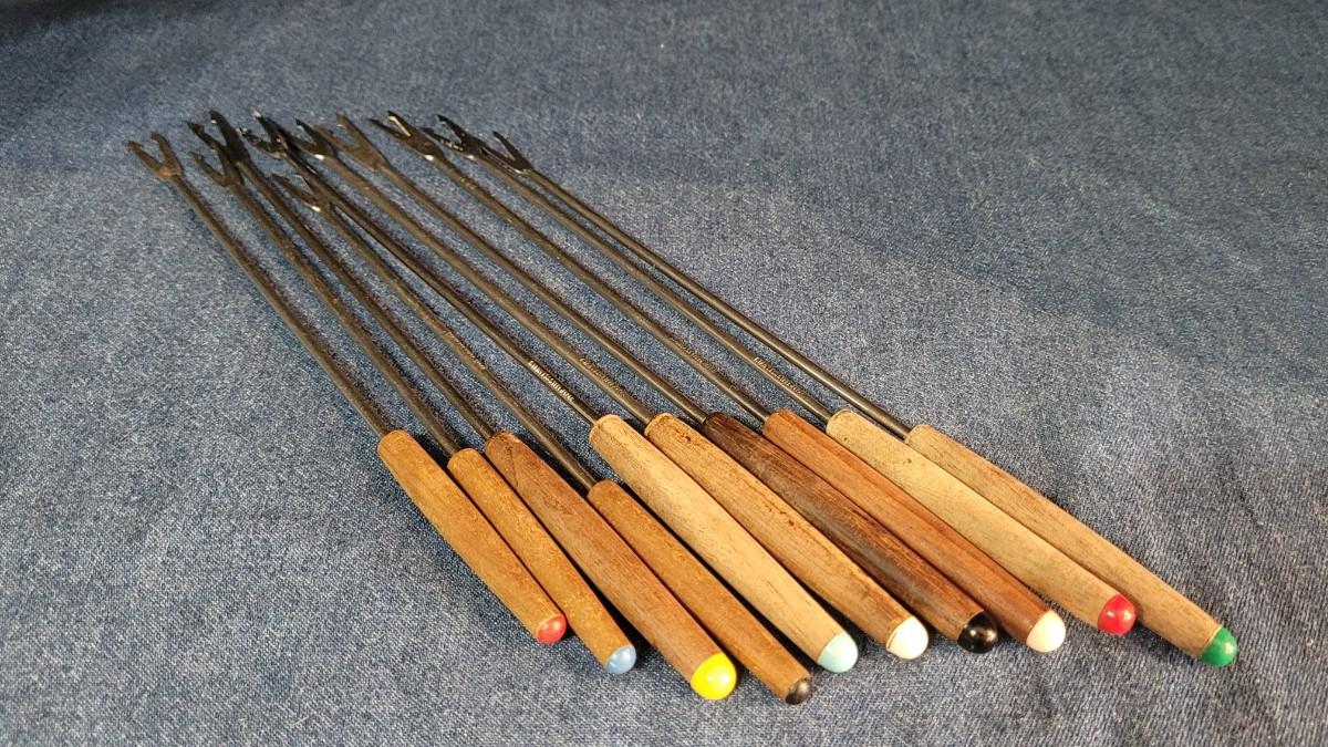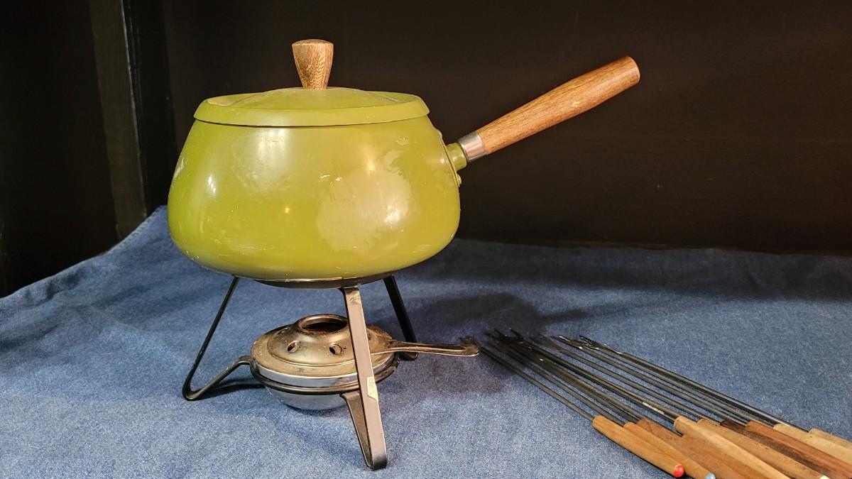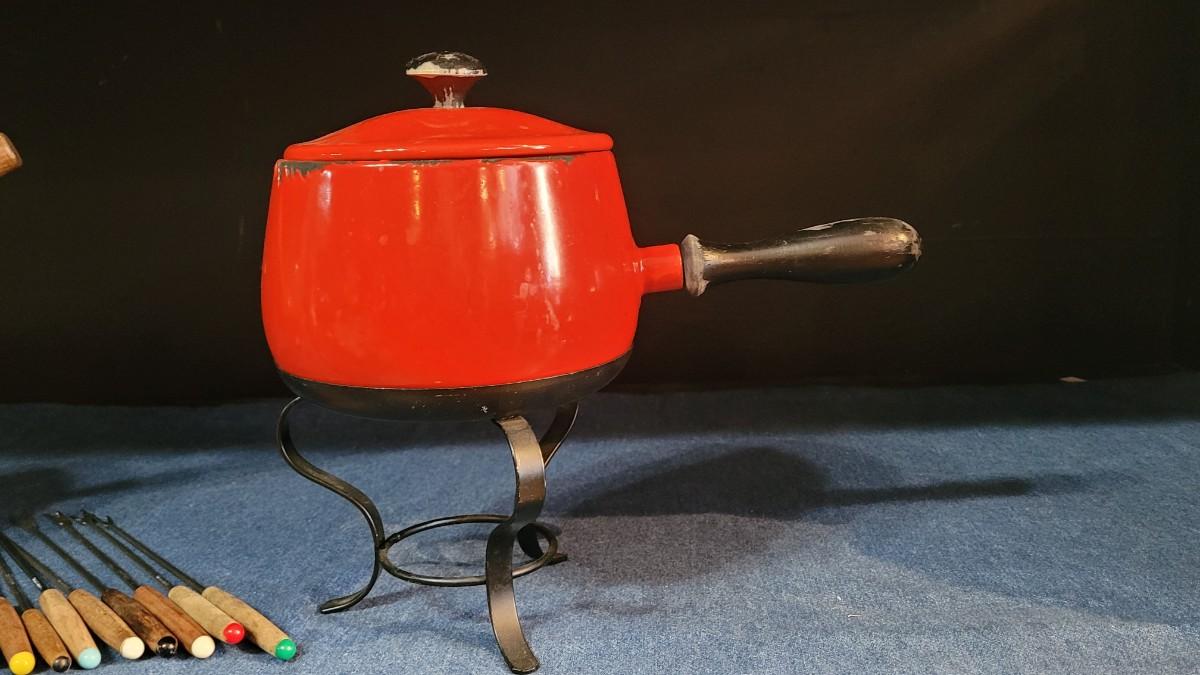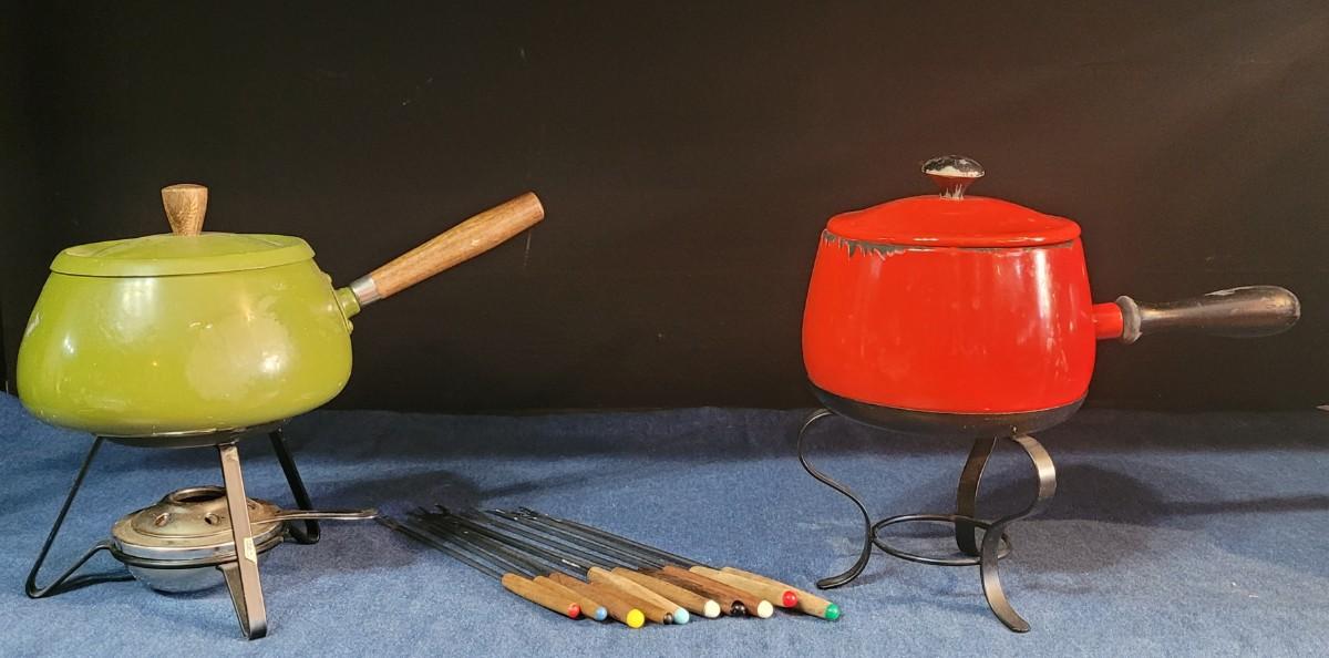 25: Vintage Red & Green Fondue Pots and Utensils