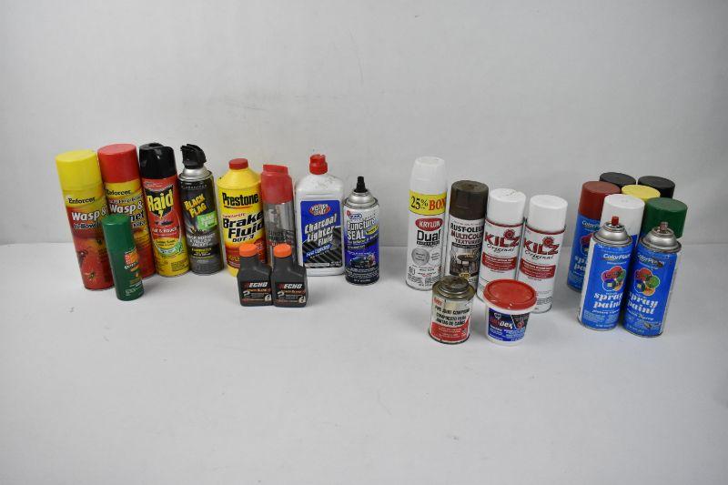 25 Bottles of Spray Chemicals - Bug Sprays, Spray Paint, Etc