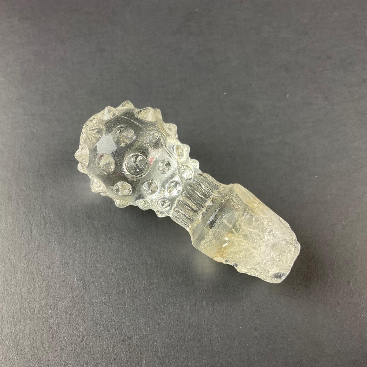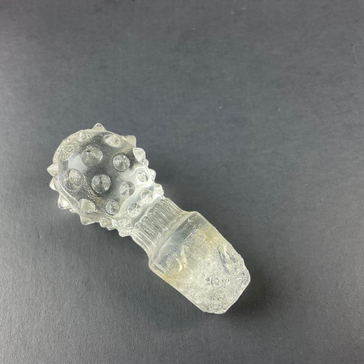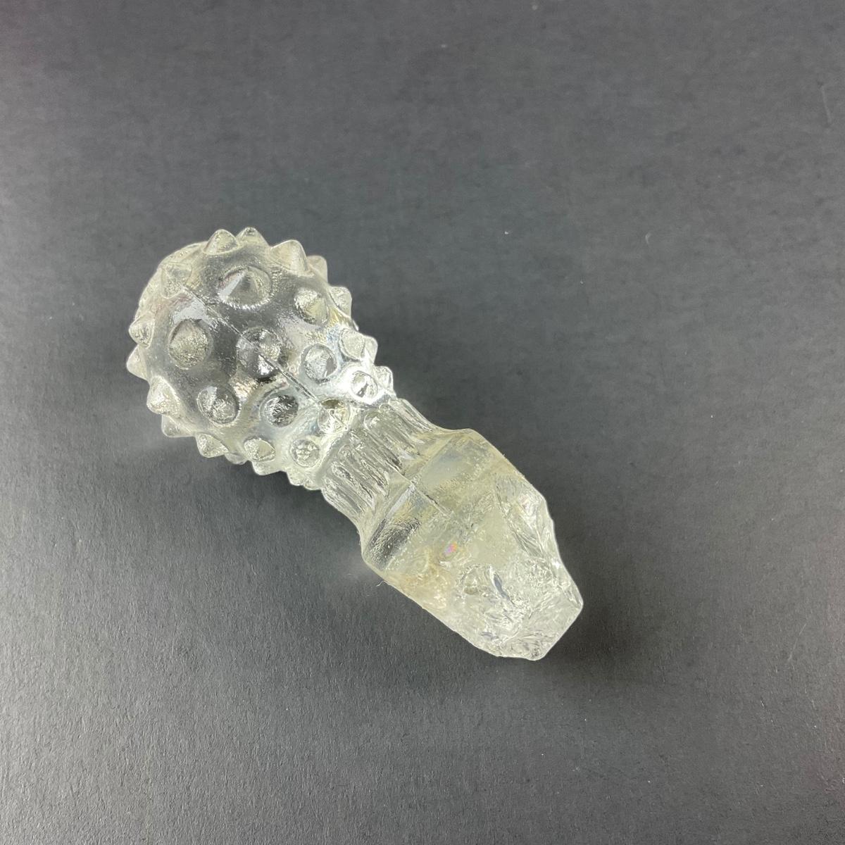 One unmarked Fenton cranberry opalescent hobnail cruet. This piece does come with a stopper however the bottom base of the stopper appears to have a good amount of damage and broken pieces. Please see photos for details and condition. Any condition statement is given as a courtesy to a client, is an opinion, and should not be treated as a statement of fact. Reference to condition written, oral or within a condition report shall not be regarded as a full account of condition and may not include all defects, alterations, or restorations. Absence of a condition report does not imply a lot is flawless or lacking imperfections or damage. Katherine’s Auction & Appraisal Service shall have no responsibility for any error or omission. Returns shall not be accepted on the basis of condition. ::: Shipping is available on this lot. If you require shipping you must let us know at the close of the auction. We will coordinate with you after the item has been won. Shipping fees will include insurance up to or exceeding the value of all items being mailed. If you have any questions regarding this lot please contact the auctioneer either via this website, by direct email or by phone. PICK UP TIMES and other important information can be found in the TERMS and DESCRIPTION of the auction. Please take a look for pertinent information. Thanks!