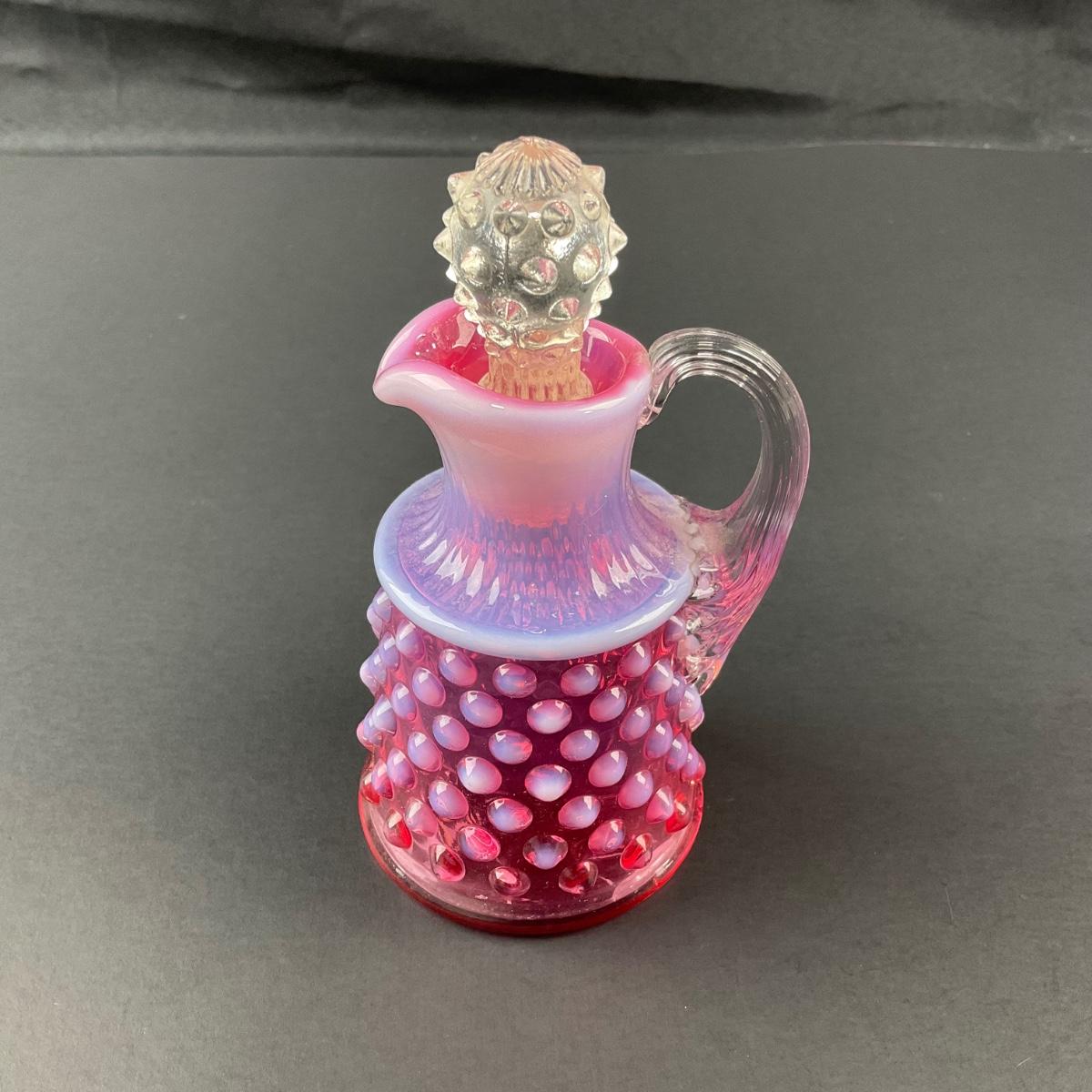 -25- FENTON | Cranberry Opalescent Hobnail Cruet