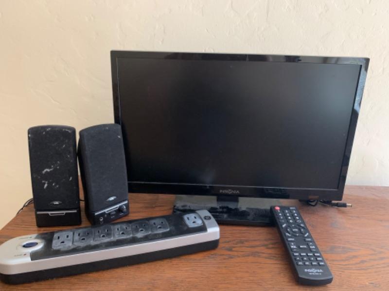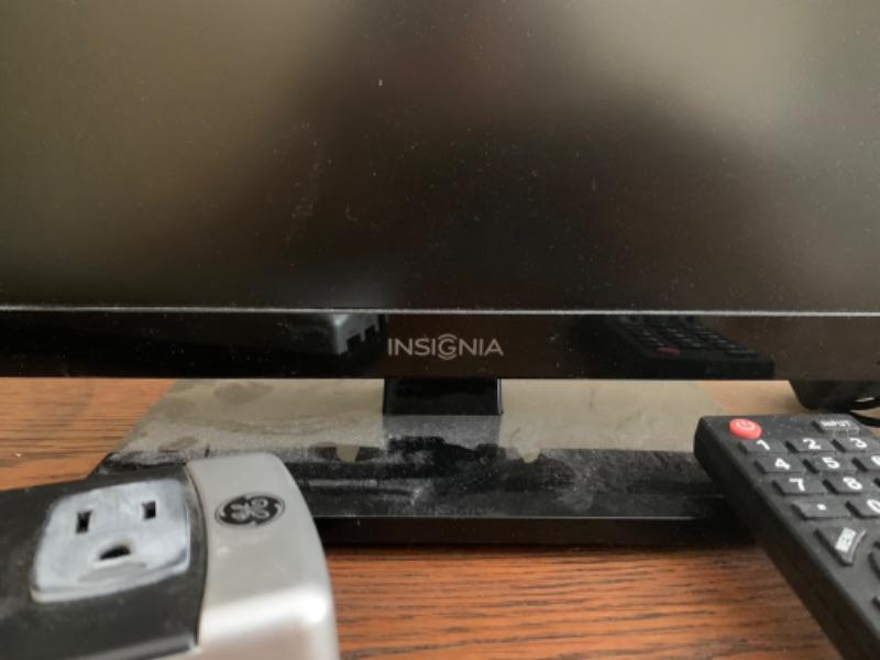 25. Flatscreen Insignia television (19-inch) with speakers and power cord