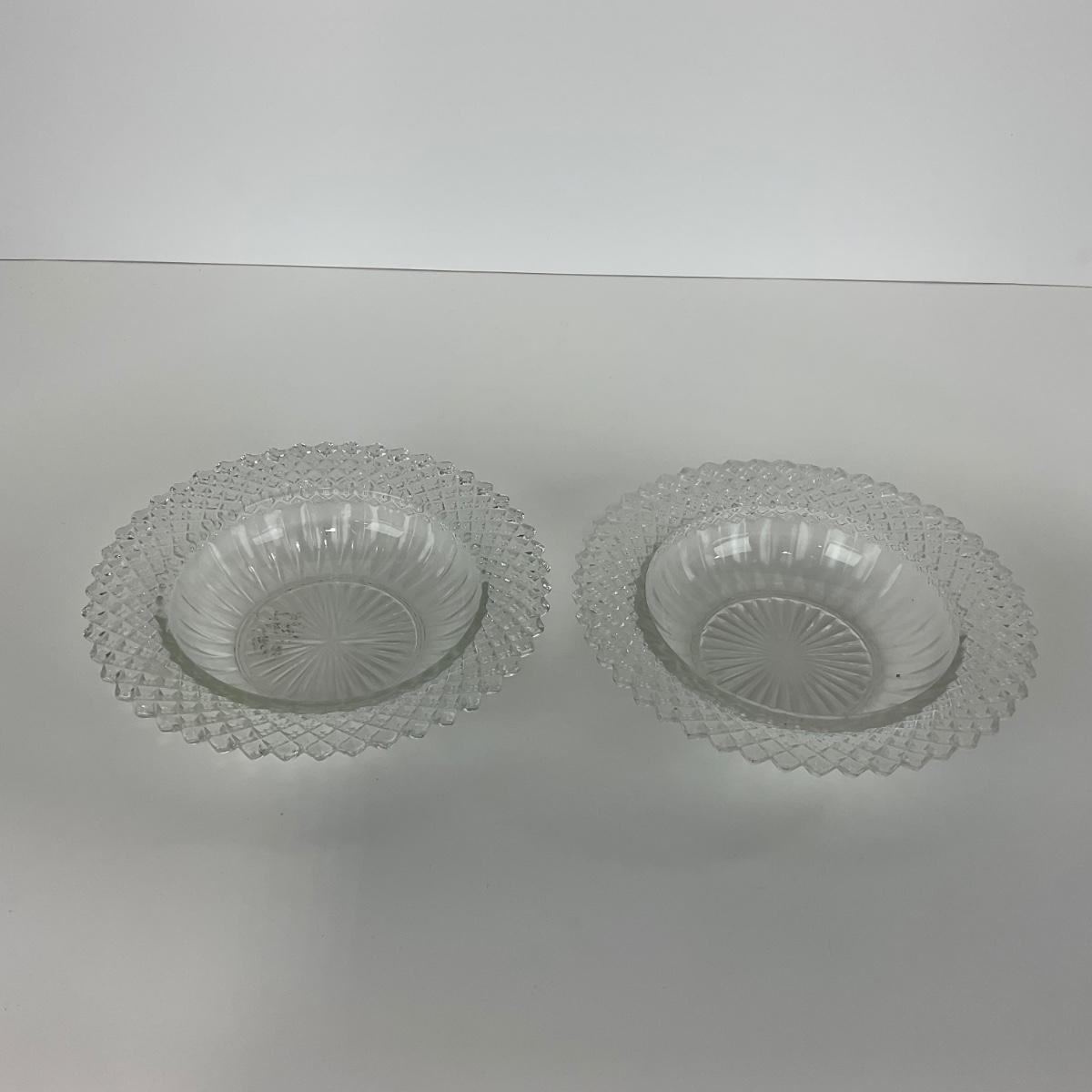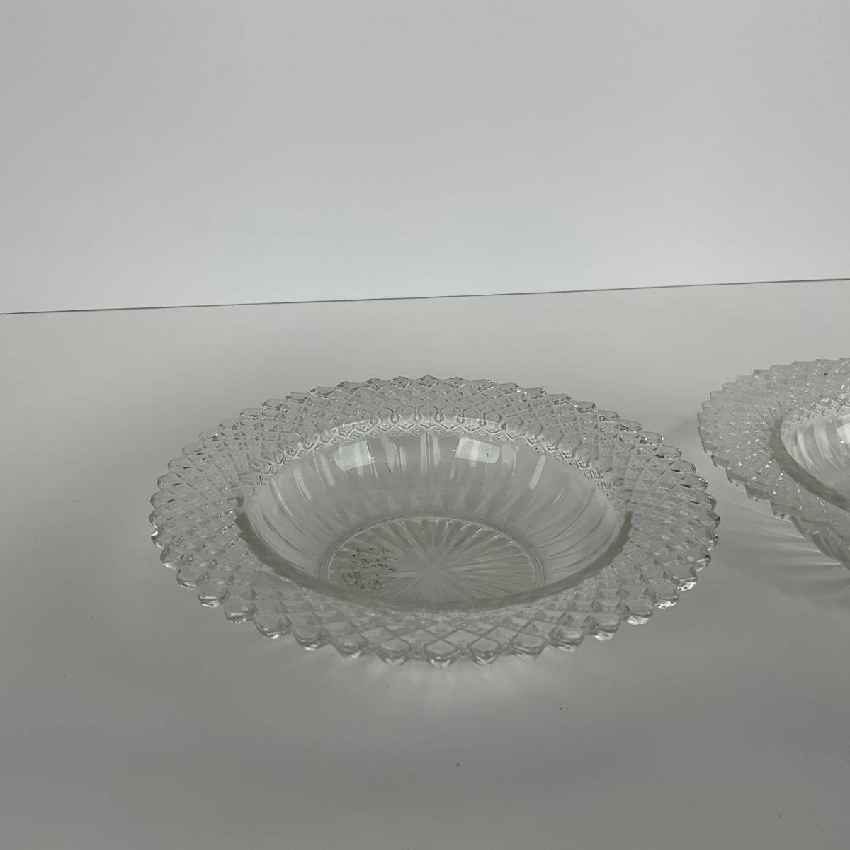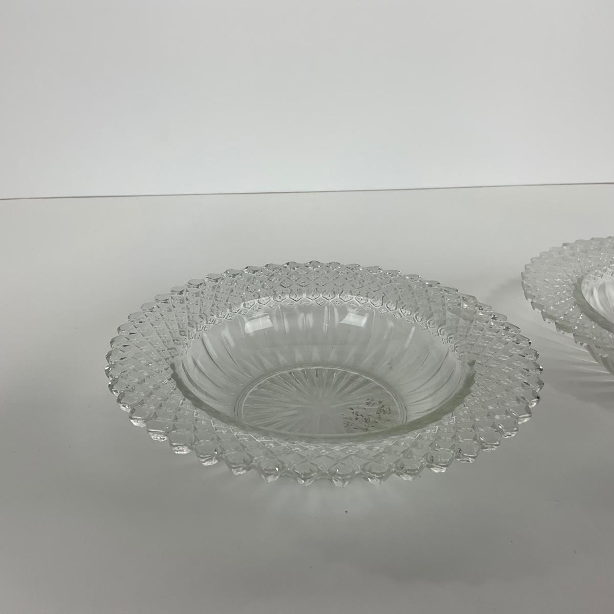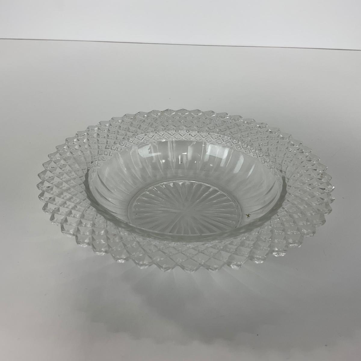 Seven piece Miss America Hocking Glass Co. (1933-1937) clear glass bowls. Please see photos for details and condition. ::: Shipping is available on this lot. If you require shipping you must let us know at the close of the auction. We will coordinate with you after the item has been won. Shipping fees will include insurance up to or exceeding the value of all items being mailed. If you have any questions regarding this lot please contact the auctioneer either via this website, by direct email or by phone. PICK UP TIMES and other important information can be found in the TERMS and DESCRIPTION of the auction. Please take a look for pertinent information. Thanks!