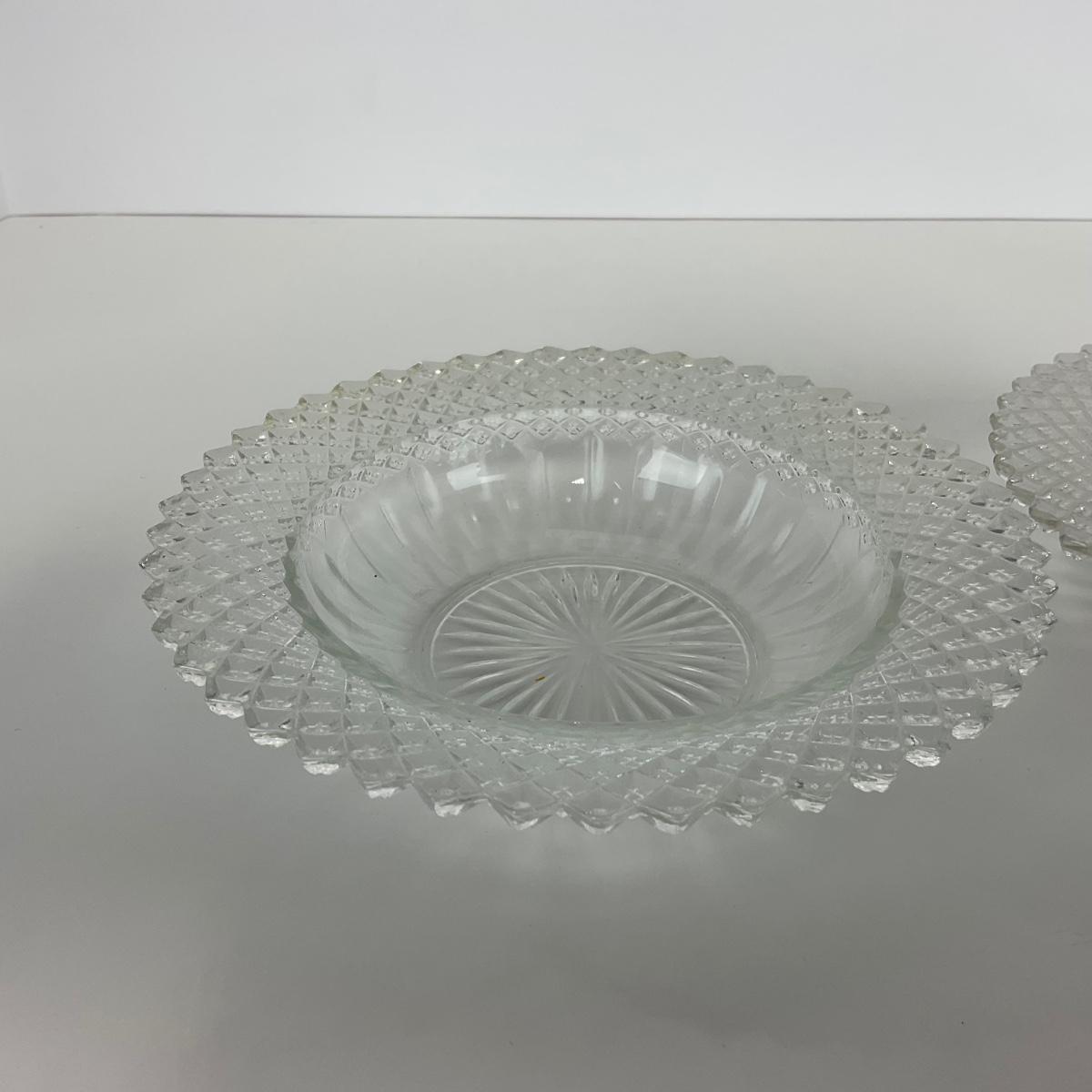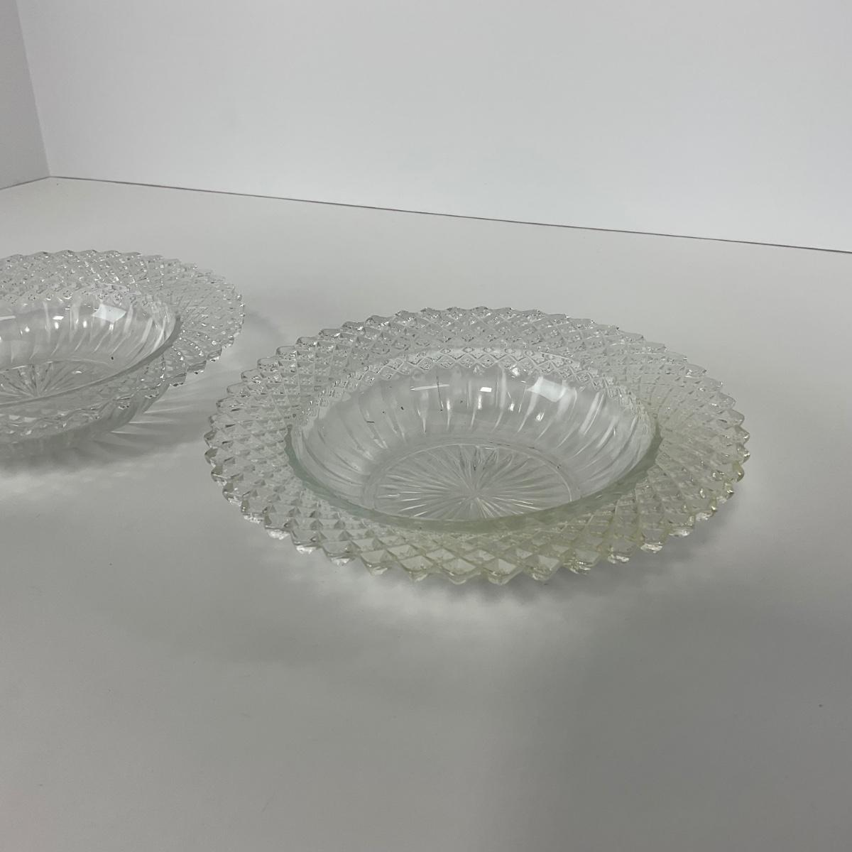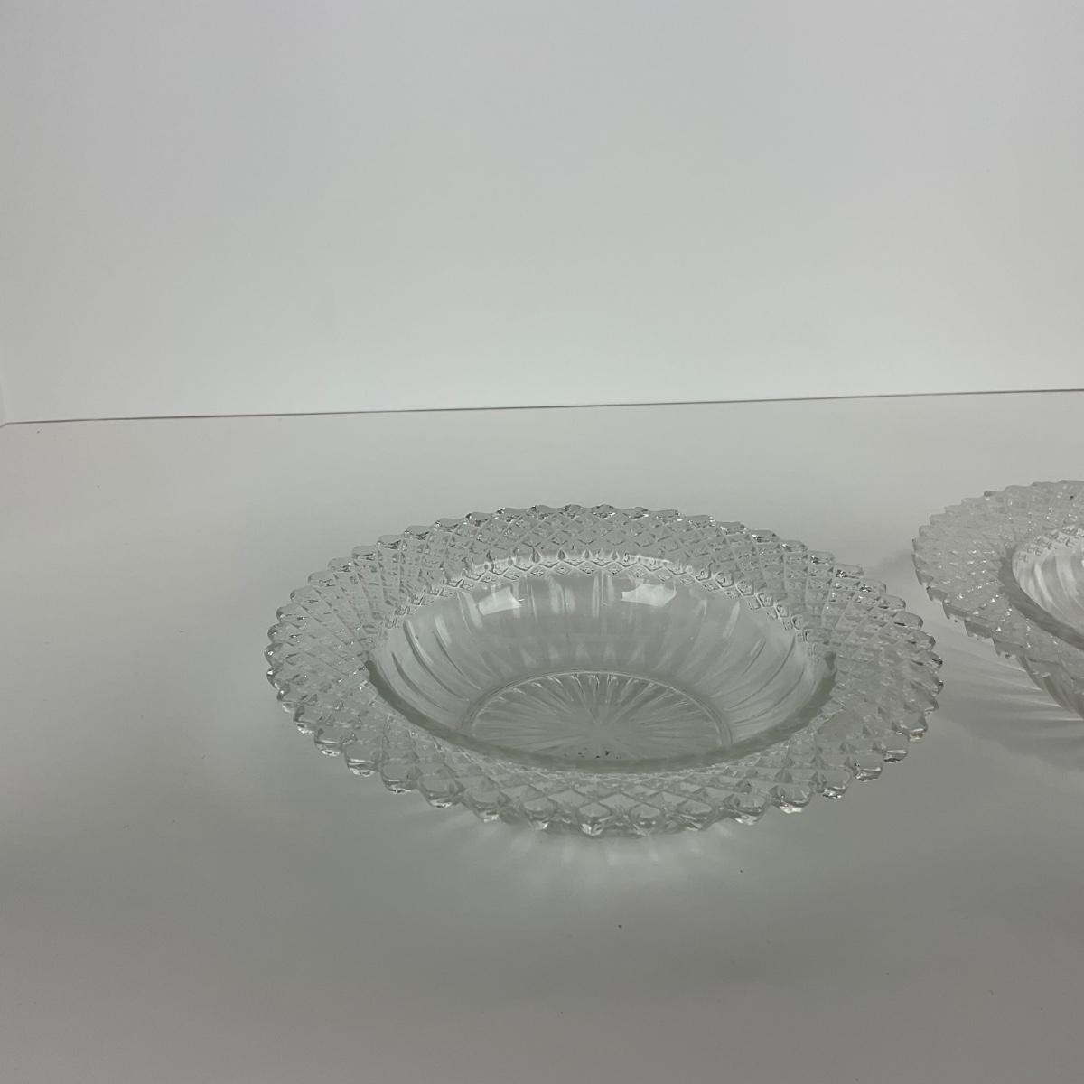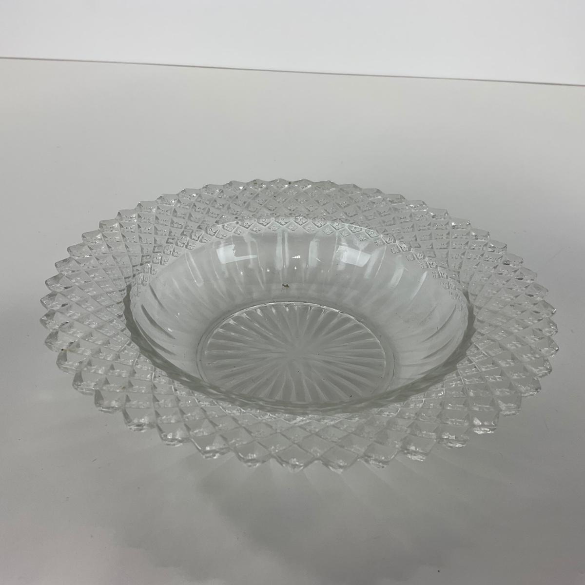 Seven piece Miss America Hocking Glass Co. (1933-1937) clear glass bowls. Please see photos for details and condition. ::: Shipping is available on this lot. If you require shipping you must let us know at the close of the auction. We will coordinate with you after the item has been won. Shipping fees will include insurance up to or exceeding the value of all items being mailed. If you have any questions regarding this lot please contact the auctioneer either via this website, by direct email or by phone. PICK UP TIMES and other important information can be found in the TERMS and DESCRIPTION of the auction. Please take a look for pertinent information. Thanks!