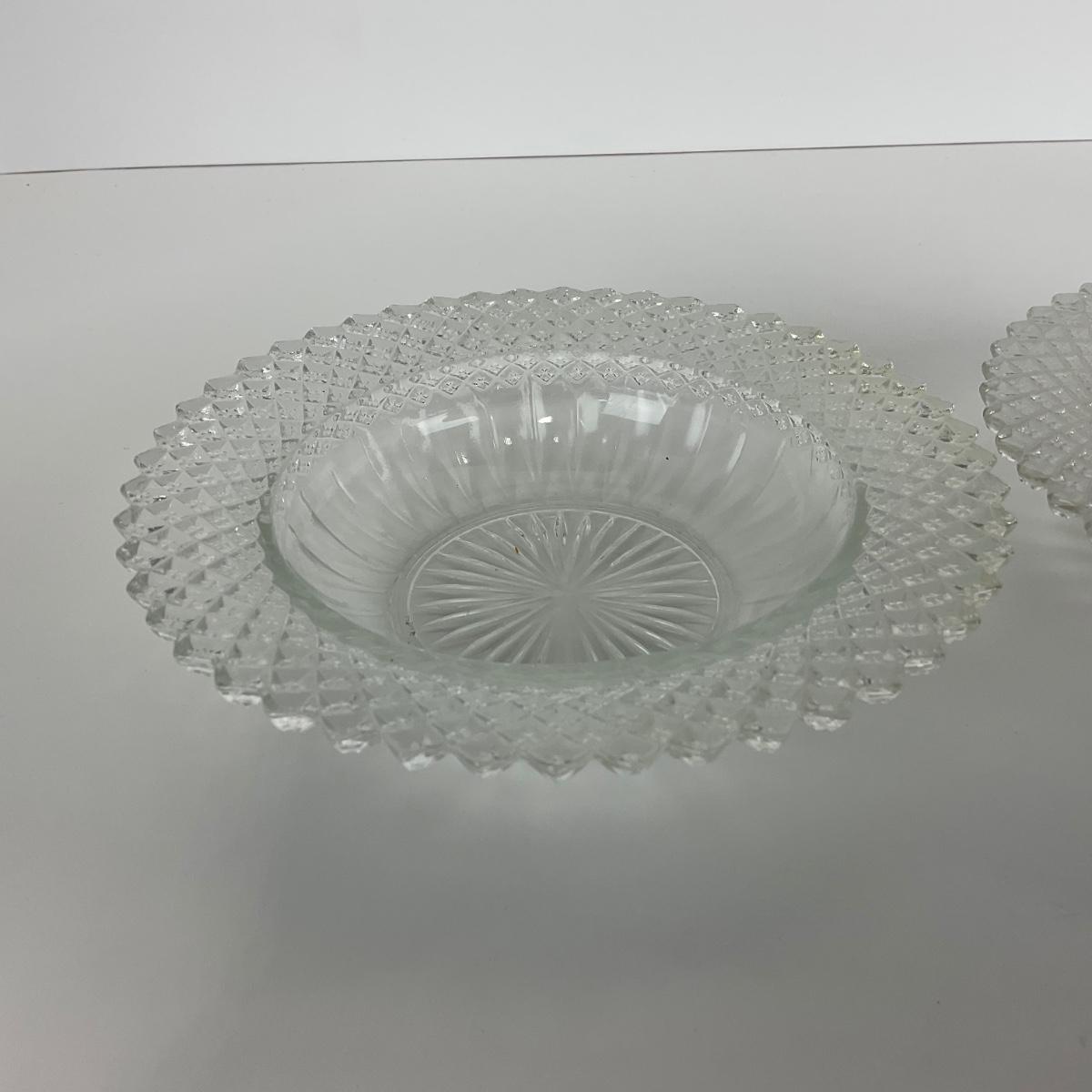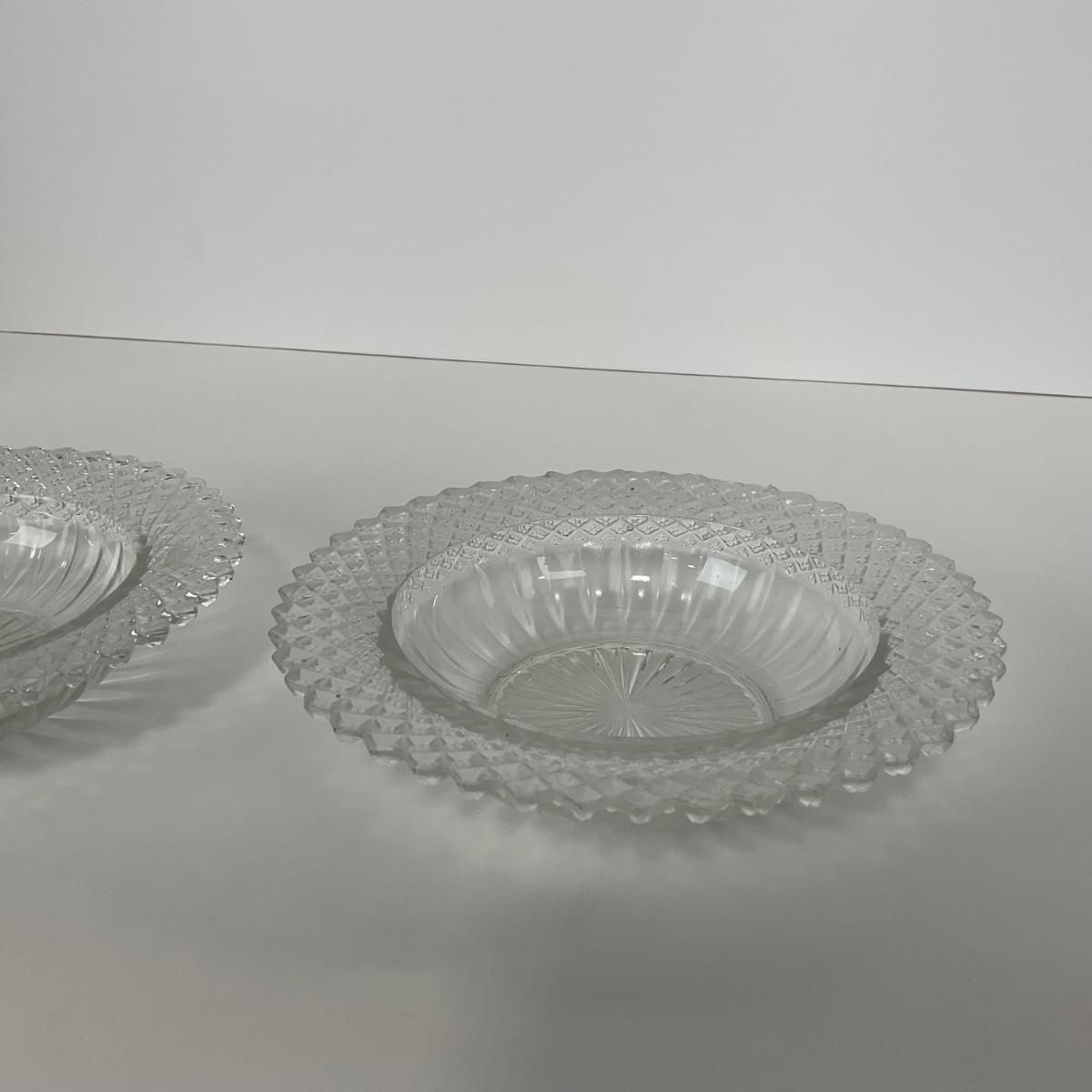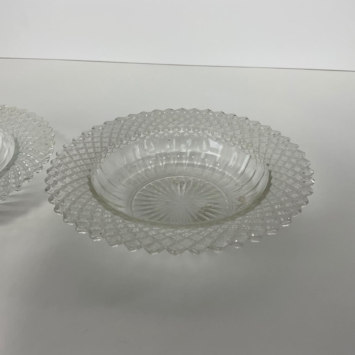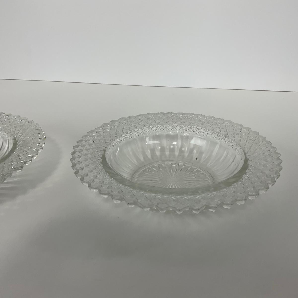 Seven piece Miss America Hocking Glass Co. (1933-1937) clear glass bowls. Please see photos for details and condition. ::: Shipping is available on this lot. If you require shipping you must let us know at the close of the auction. We will coordinate with you after the item has been won. Shipping fees will include insurance up to or exceeding the value of all items being mailed. If you have any questions regarding this lot please contact the auctioneer either via this website, by direct email or by phone. PICK UP TIMES and other important information can be found in the TERMS and DESCRIPTION of the auction. Please take a look for pertinent information. Thanks!