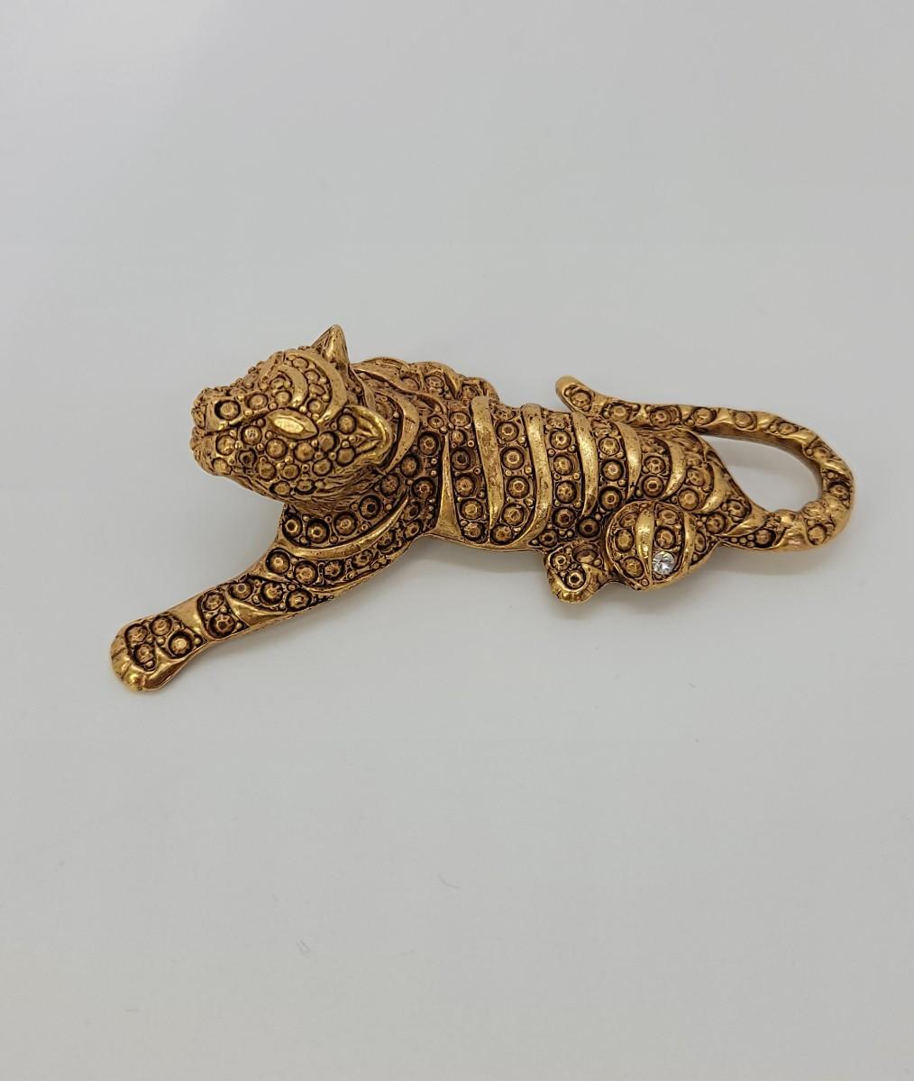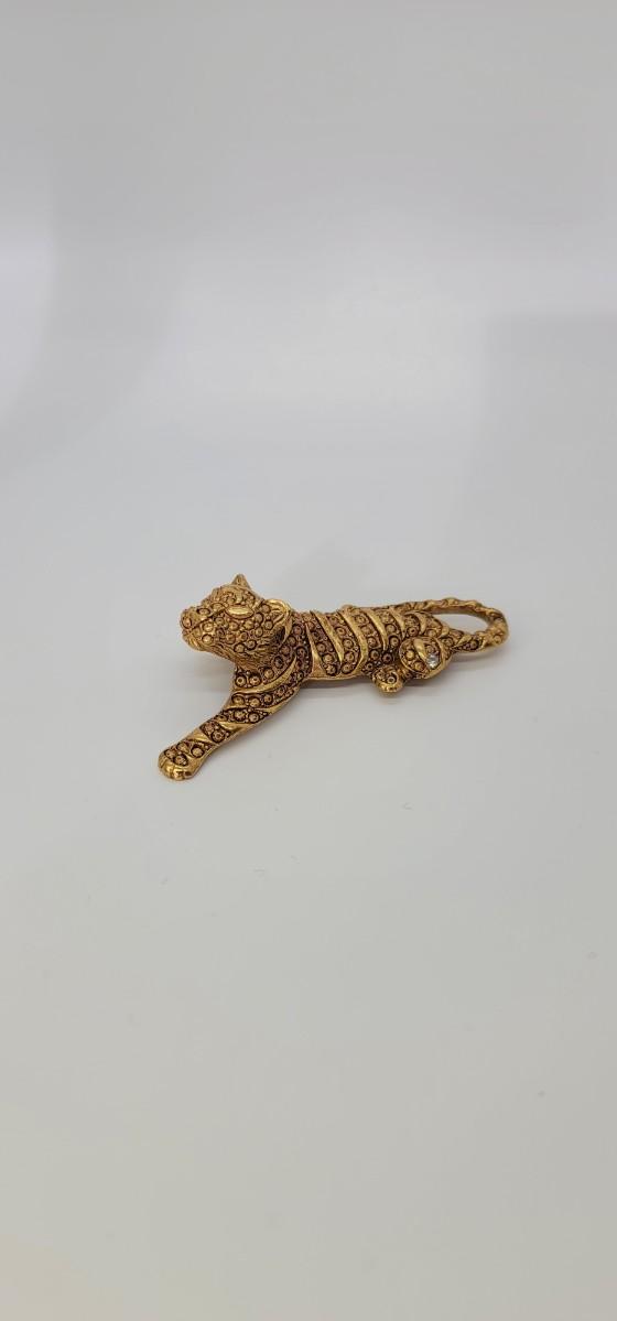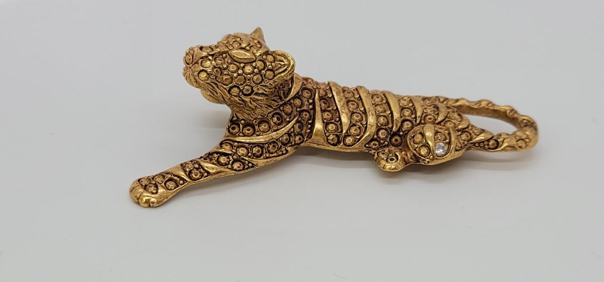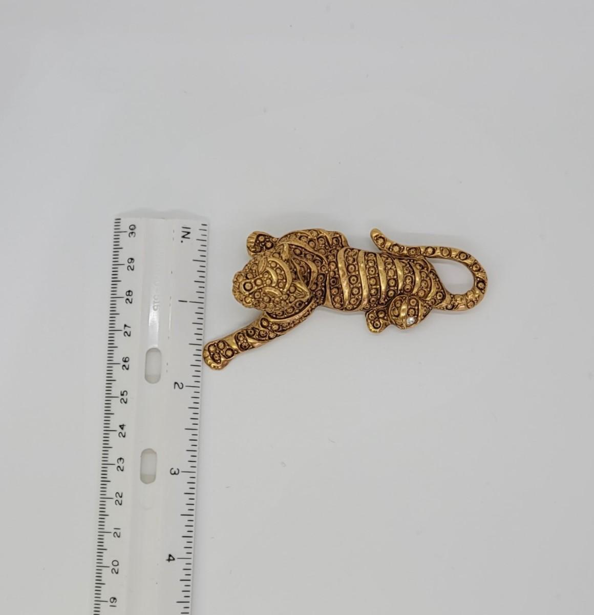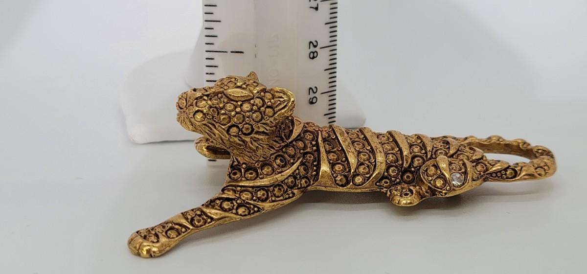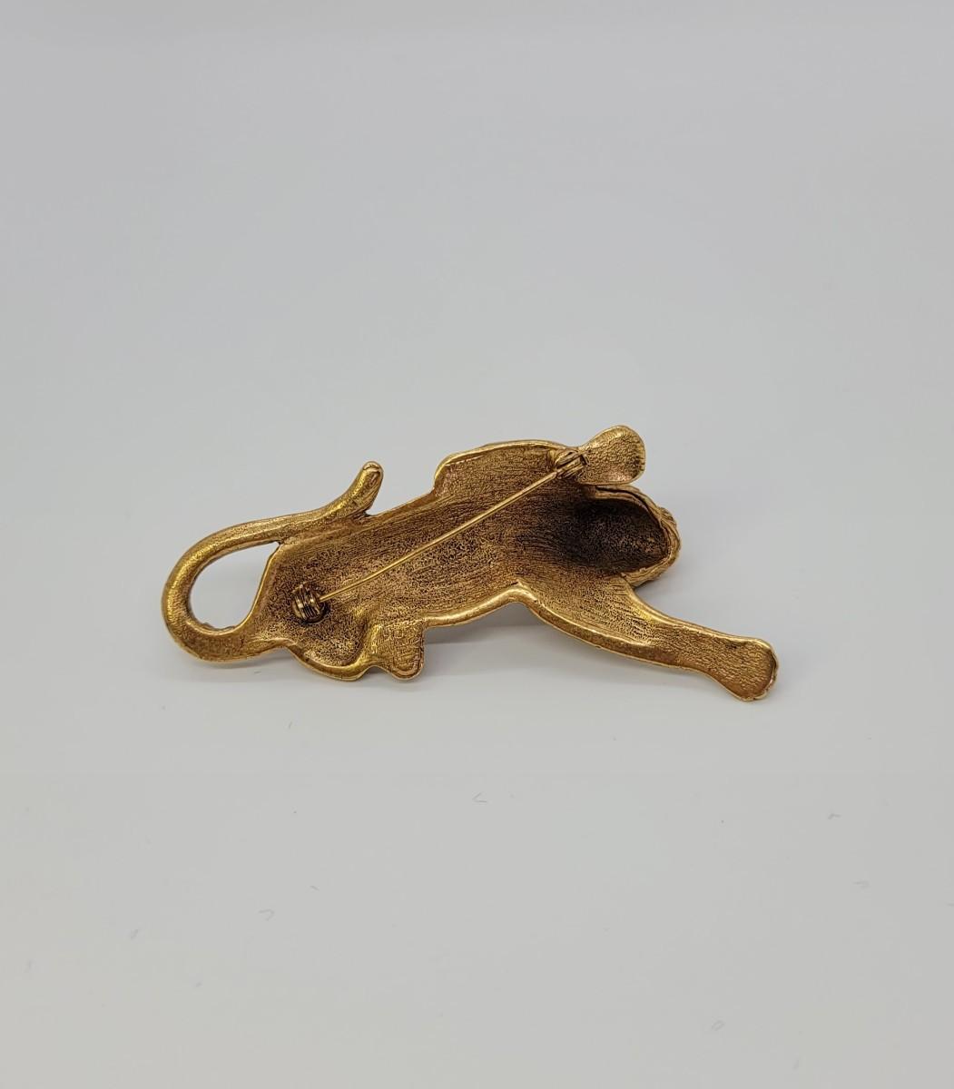 25: Goldtone marcasite style Panther brooch with a crystal on hind leg