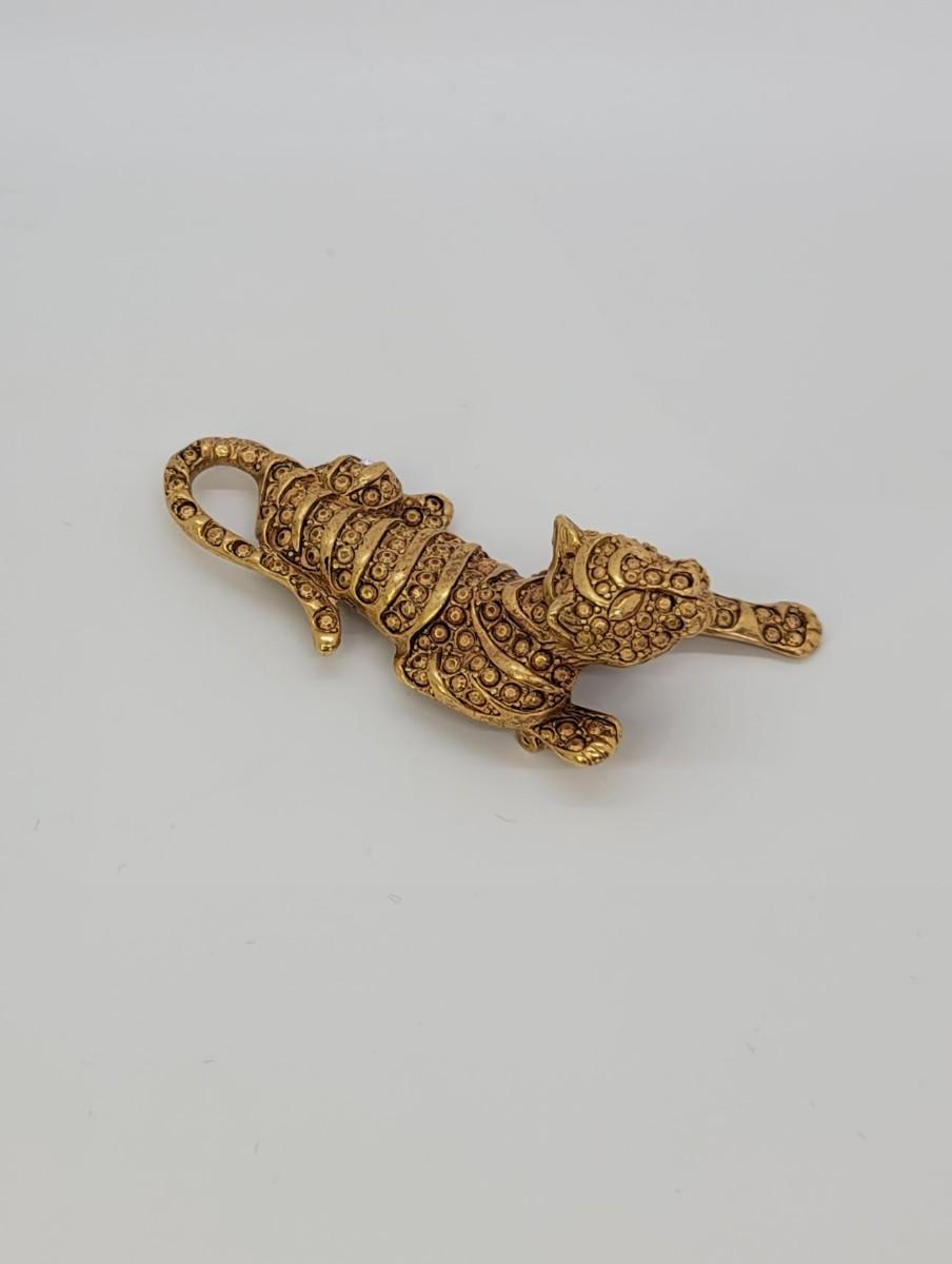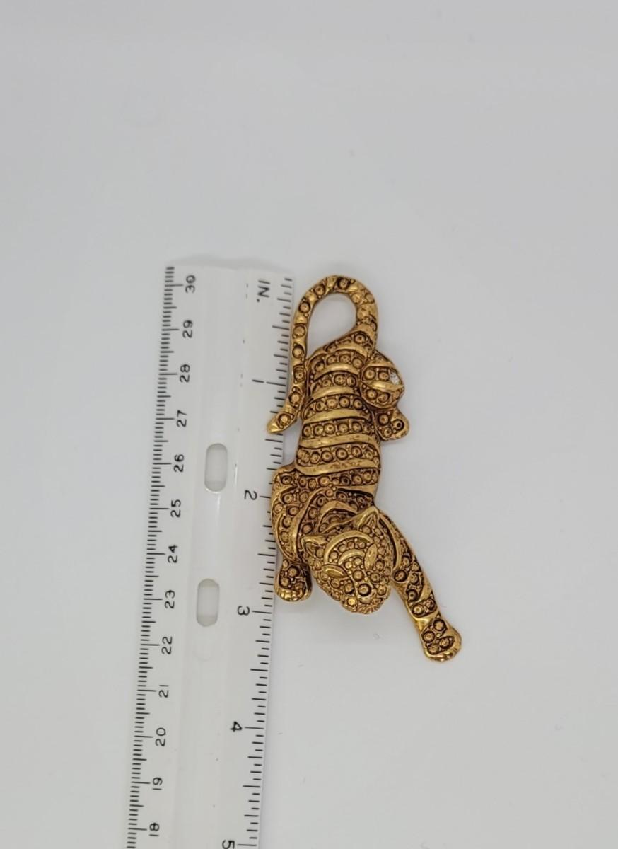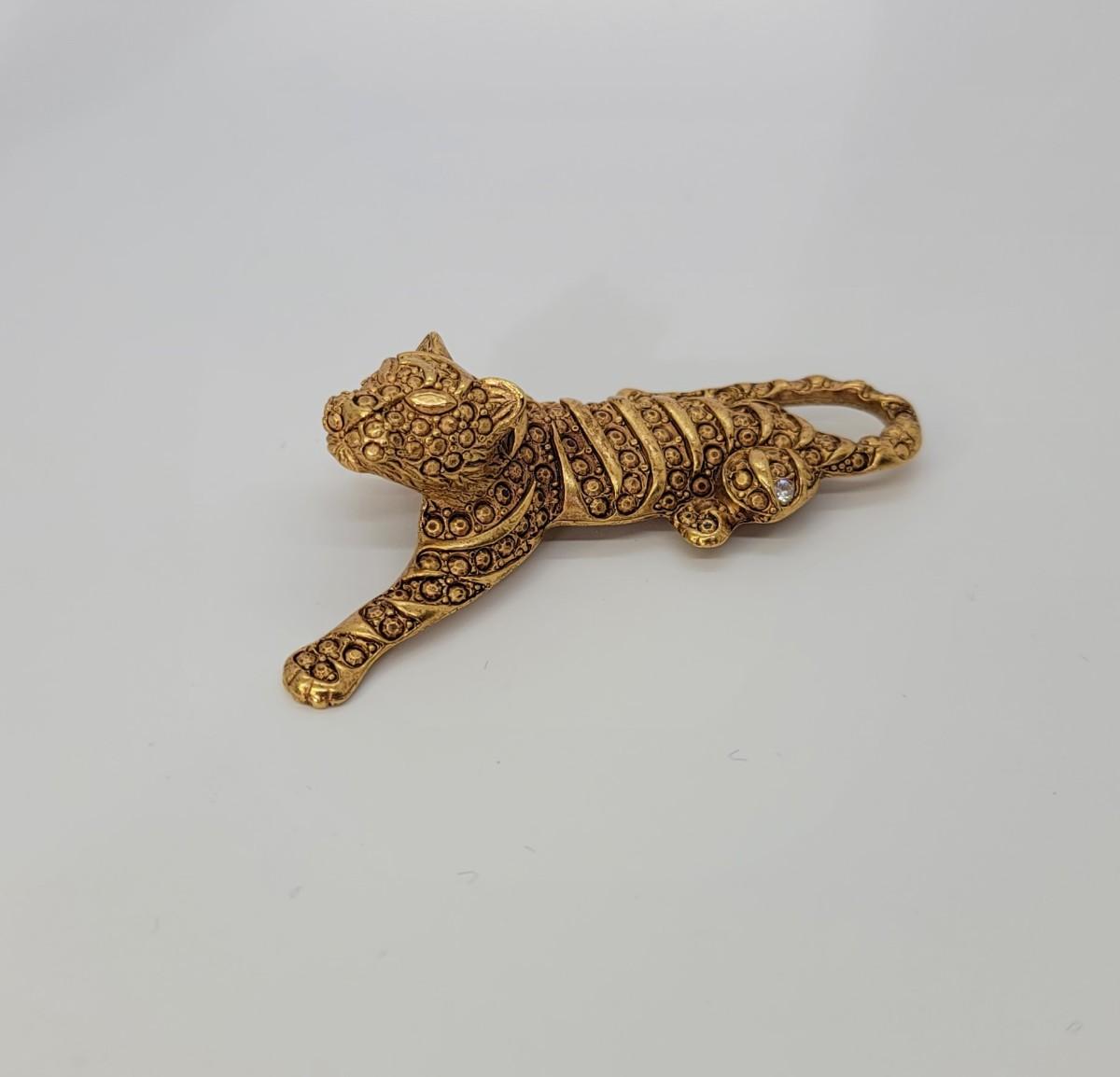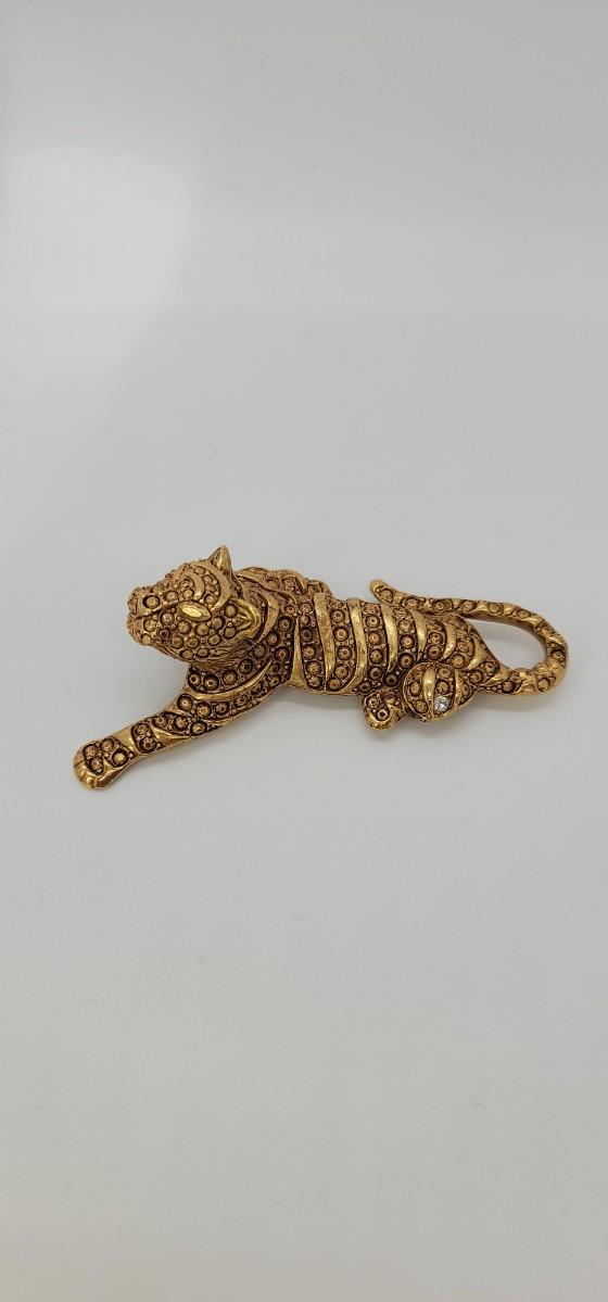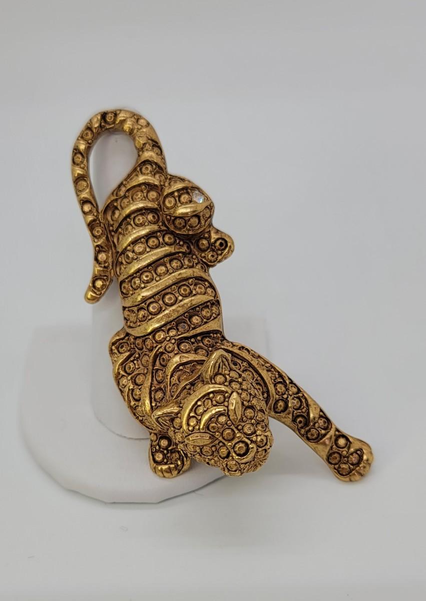25: Goldtone marcasite style Panther brooch with a crystal on hind leg
