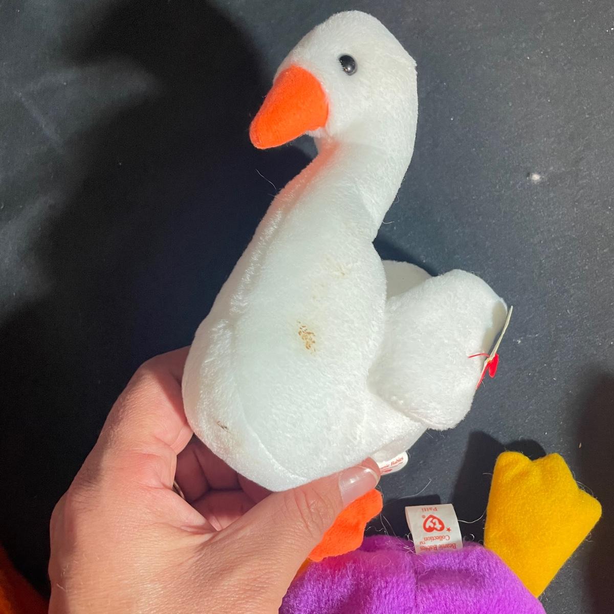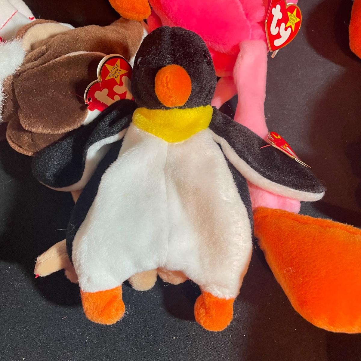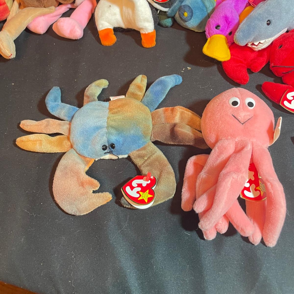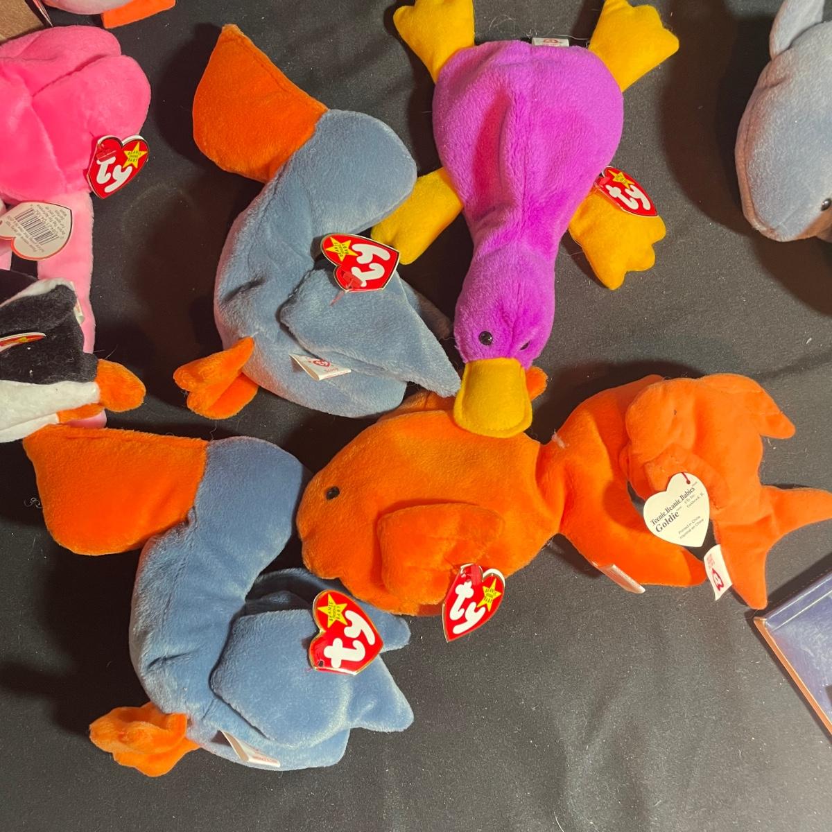 Twenty five tagged Beanie Babies plus two collector books. The swan, Gracie has a blemish, but the rest appear to be blemish free. Some rarer babies include Strut, Claude, and Gobbles. See images. Shipping available.