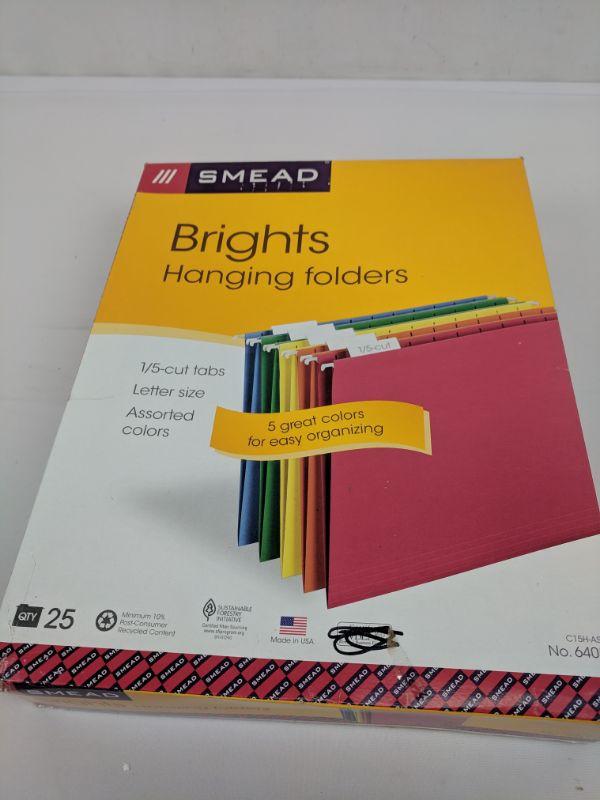 25 Letter Size Hanging Folders, Brights, 1/5-Cut Tabs, Assorted Colors - New