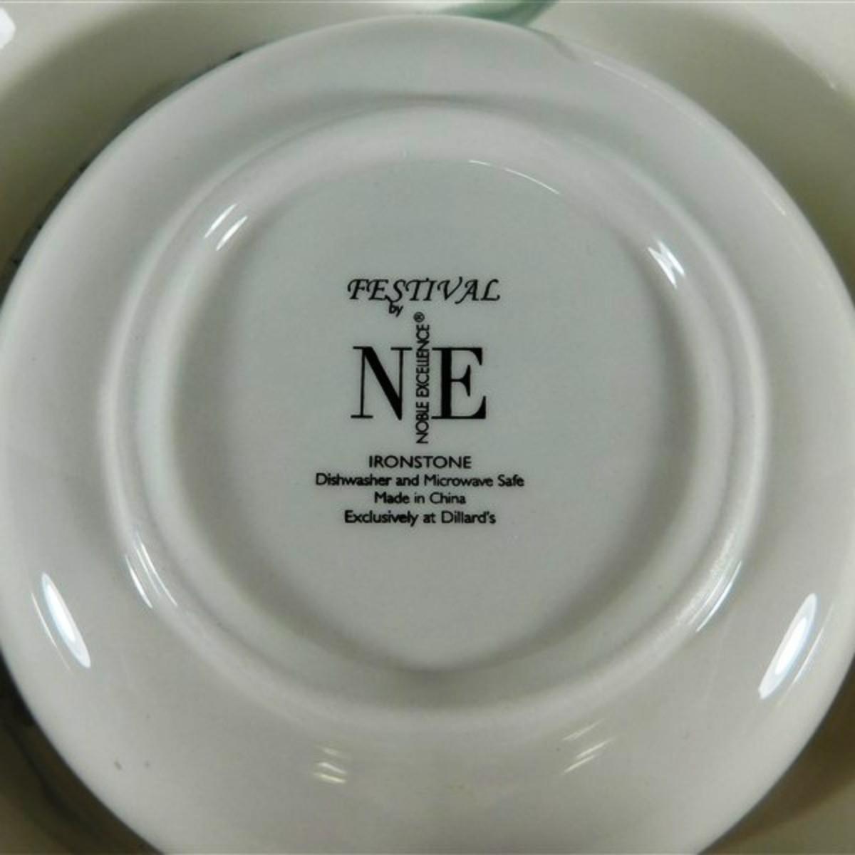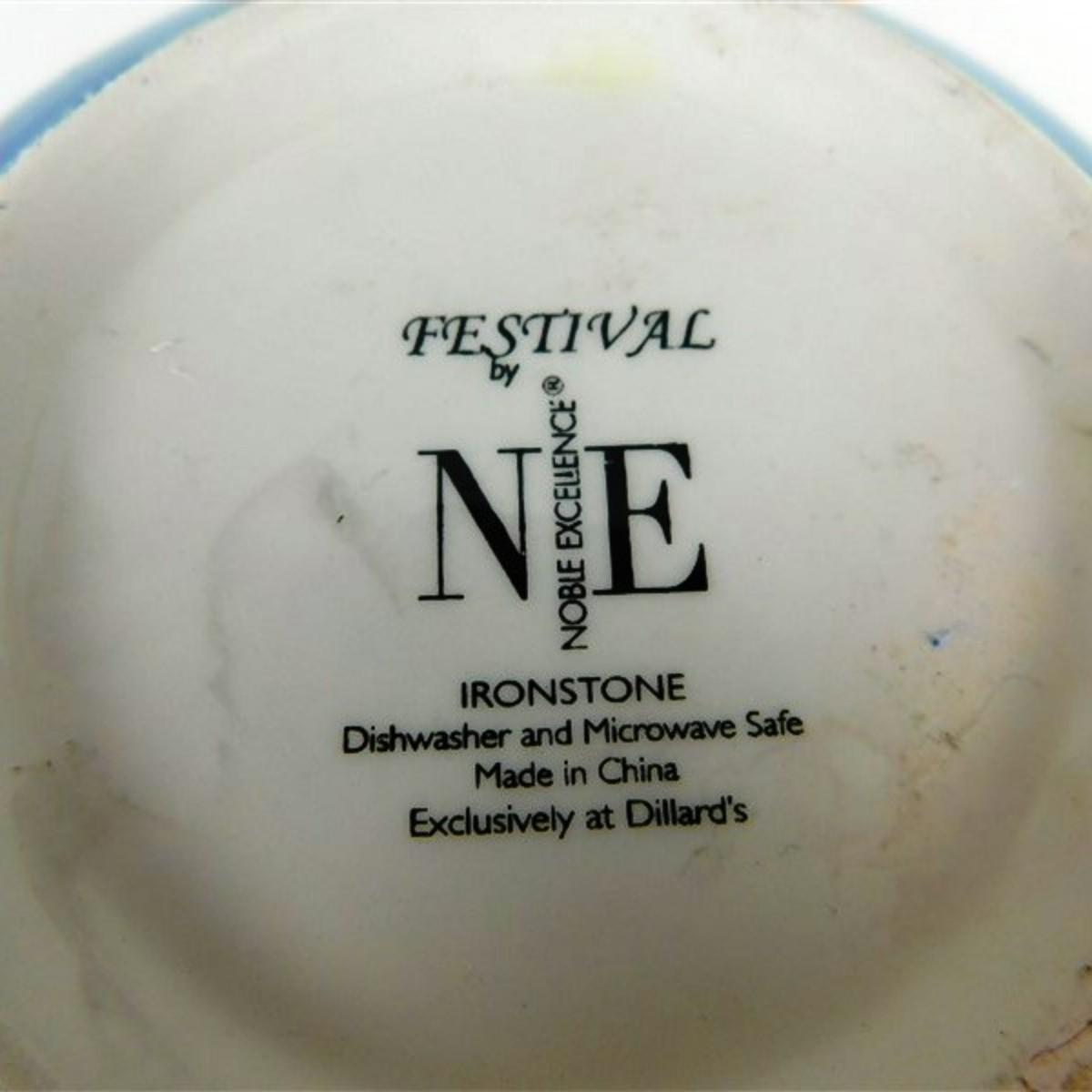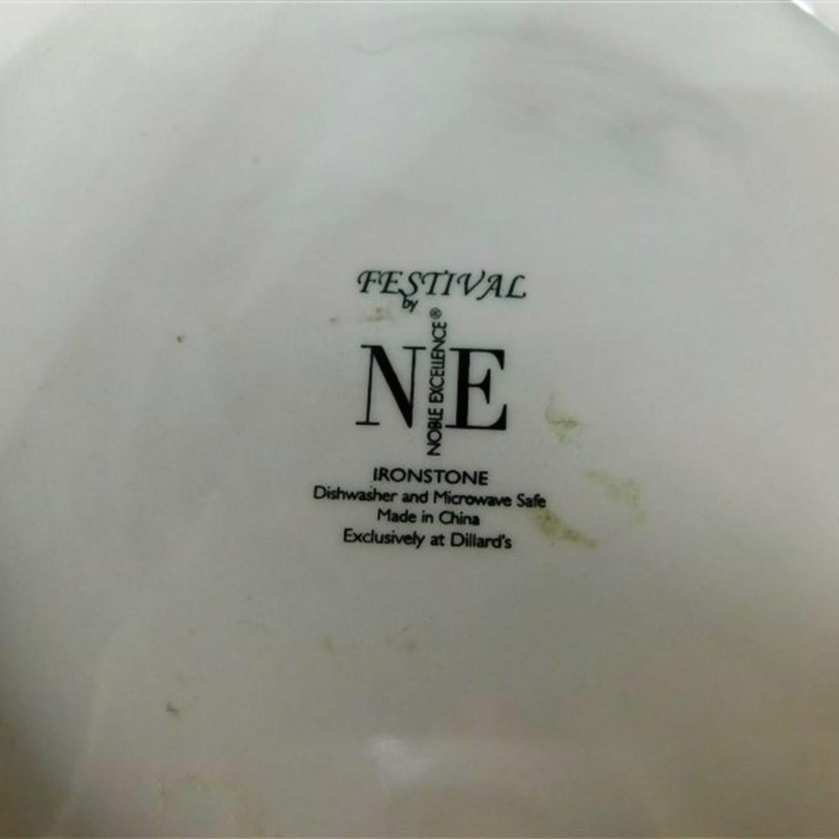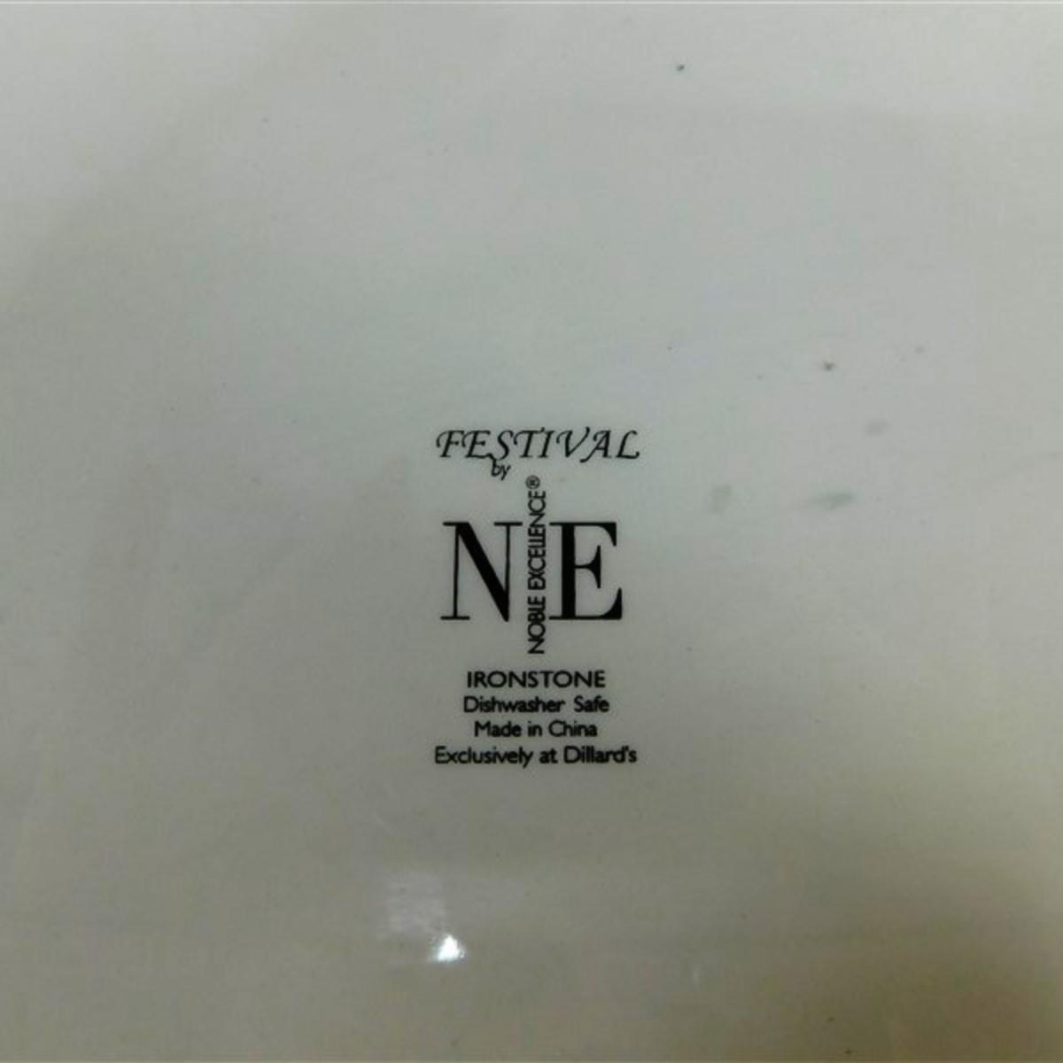 25 Lot of 4- Festival by Noble Excellence Ironstone Serving Pieces - Platter 19 x 14 - Dip Platter With Bowl 13 1/2- Large Bowl 11 1/2 x 4