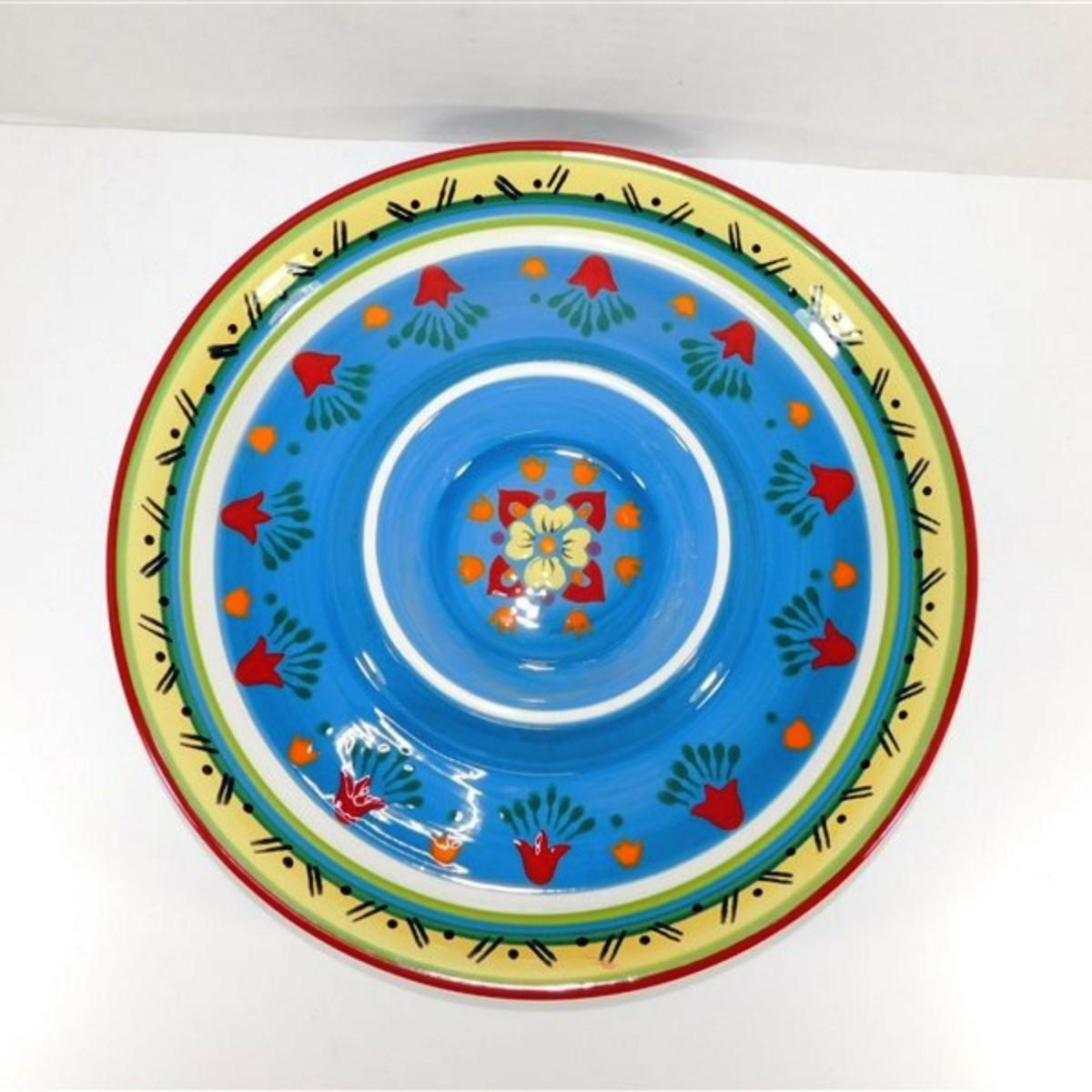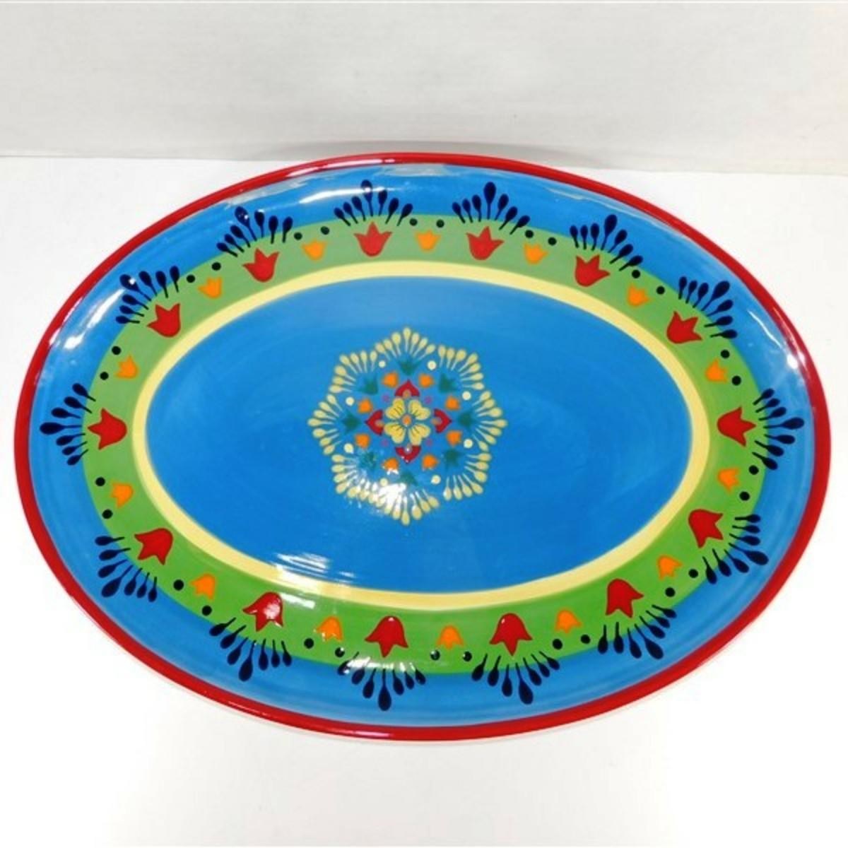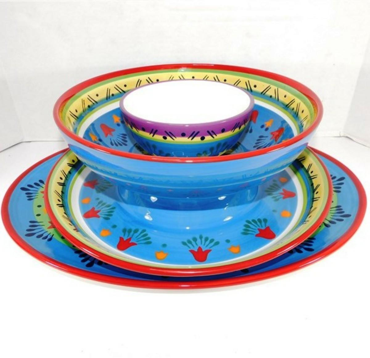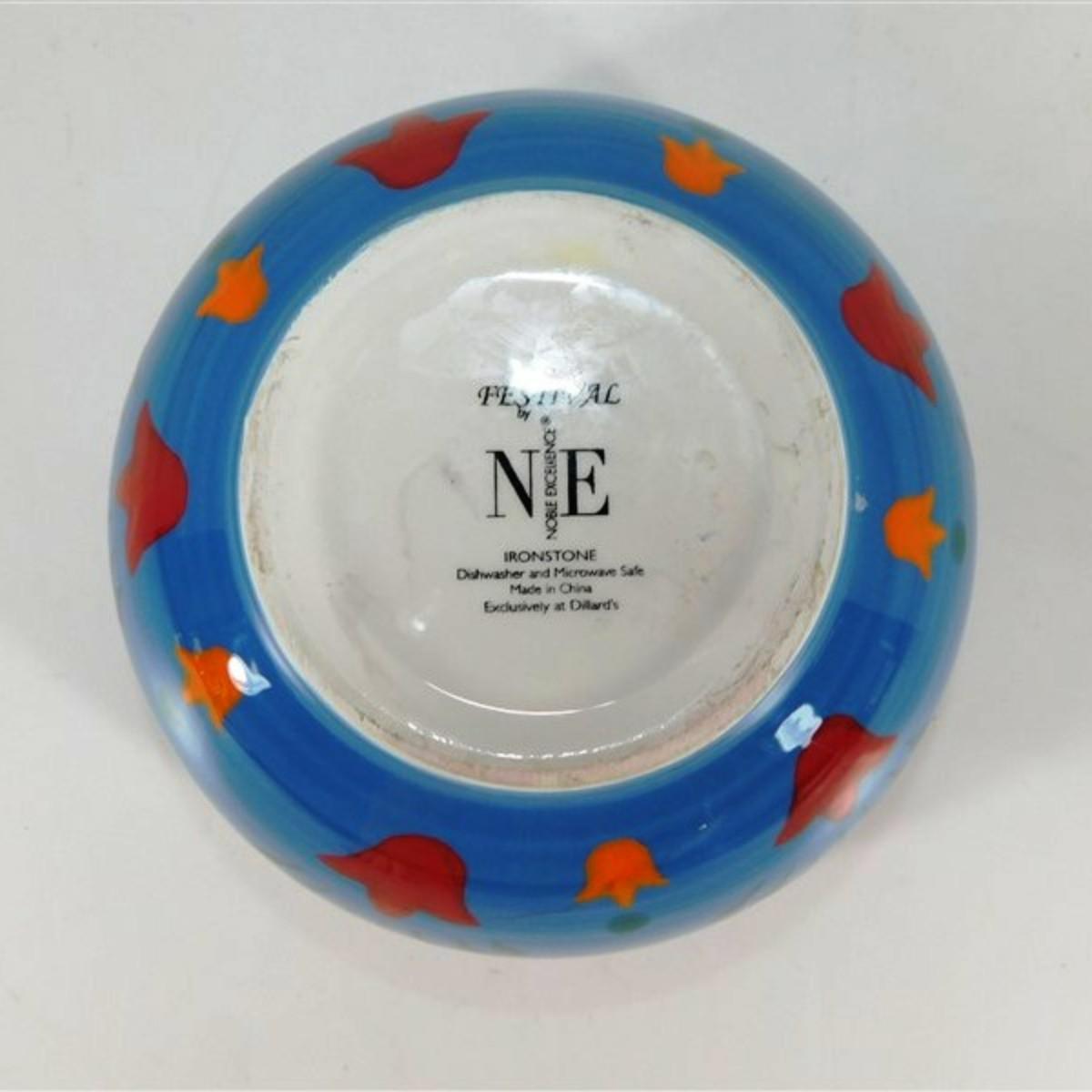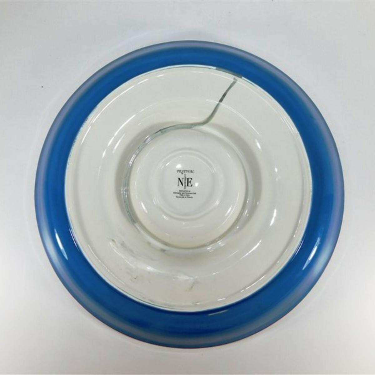 25 Lot of 4- Festival by Noble Excellence Ironstone Serving Pieces - Platter 19 x 14 - Dip Platter With Bowl 13 1/2- Large Bowl 11 1/2 x 4