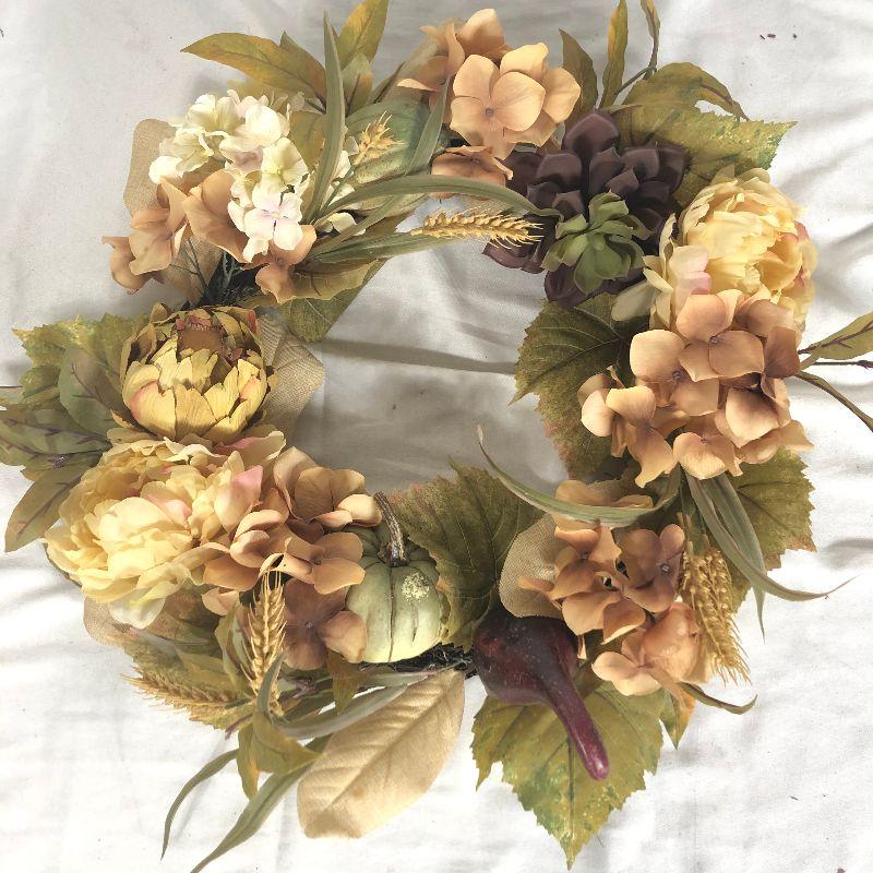 Lot 37 ~ 25" Metal Barstool - Topiapy - Floral Wreath