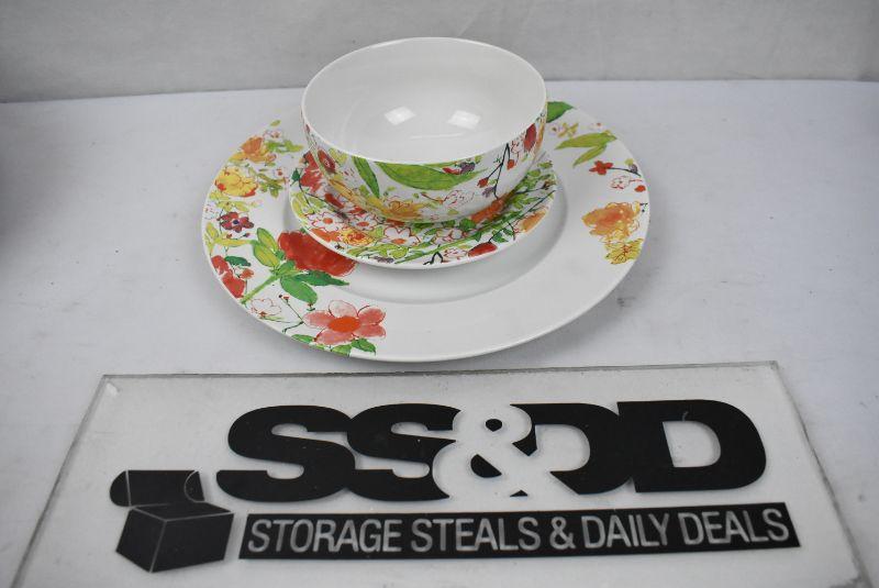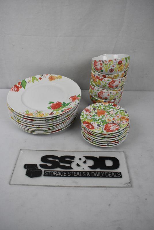 25 pc Floral Dishware by 222 Fifth "Fleuriete" 6 Bowls, 8 small Plates, 11 large plates