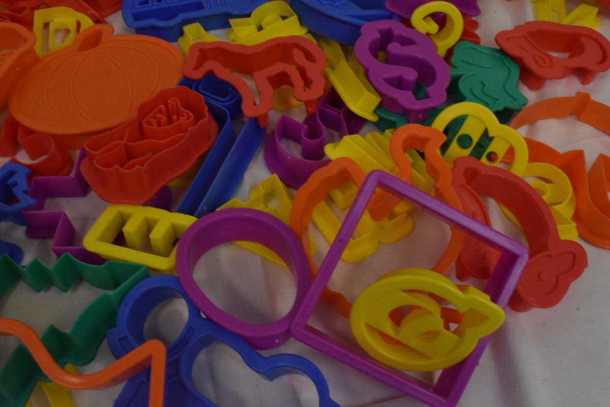 25+ pcs plastic Cookie Cutter lot: Holidays, letters, transportation, sports, dinosaurs, shapes