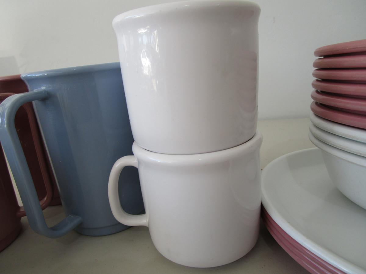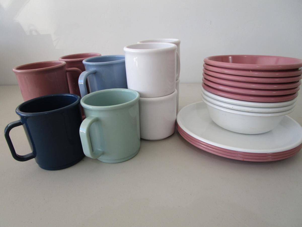 4 plates, 9 bowls, 6 cups, 3 mugs