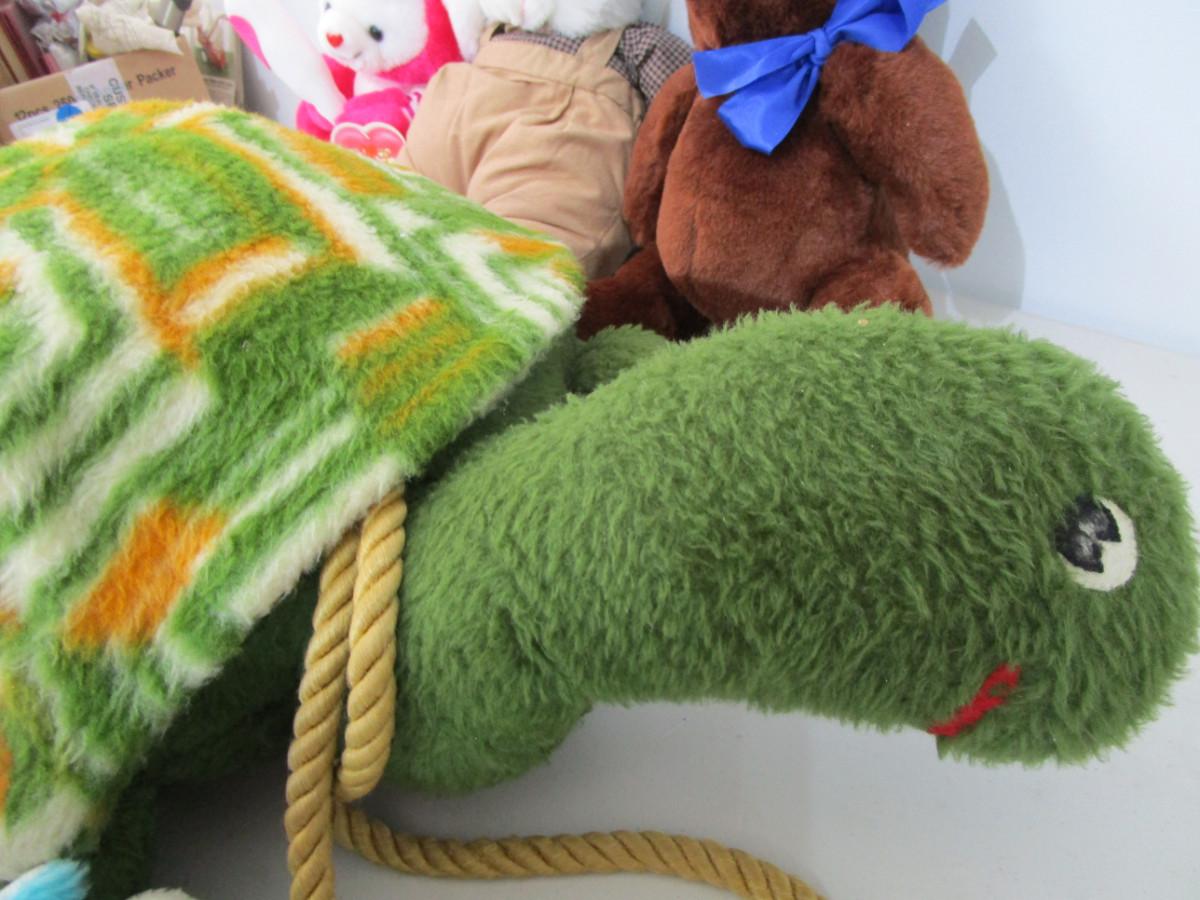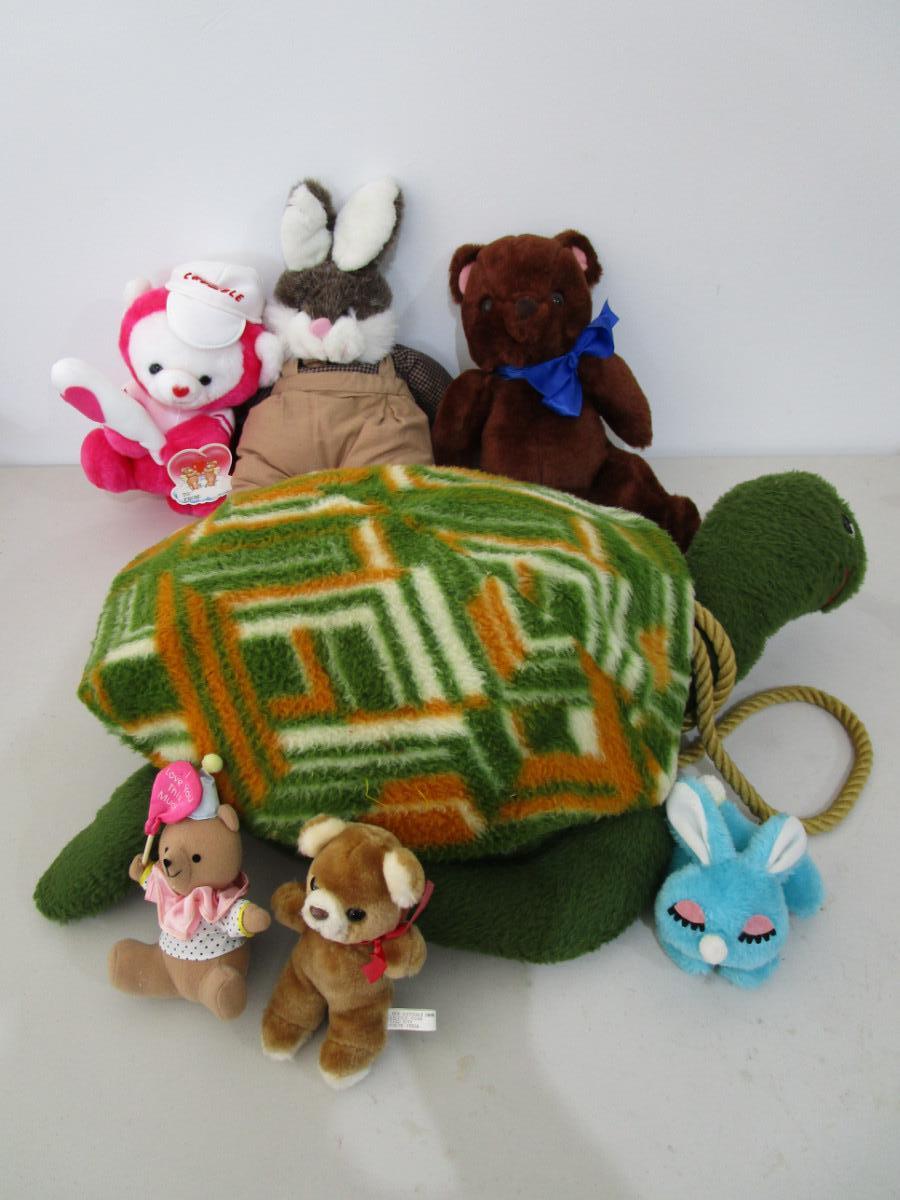 Large sea turtle, medium bear, rabbit monkey, small 2 bears and 1 bunny