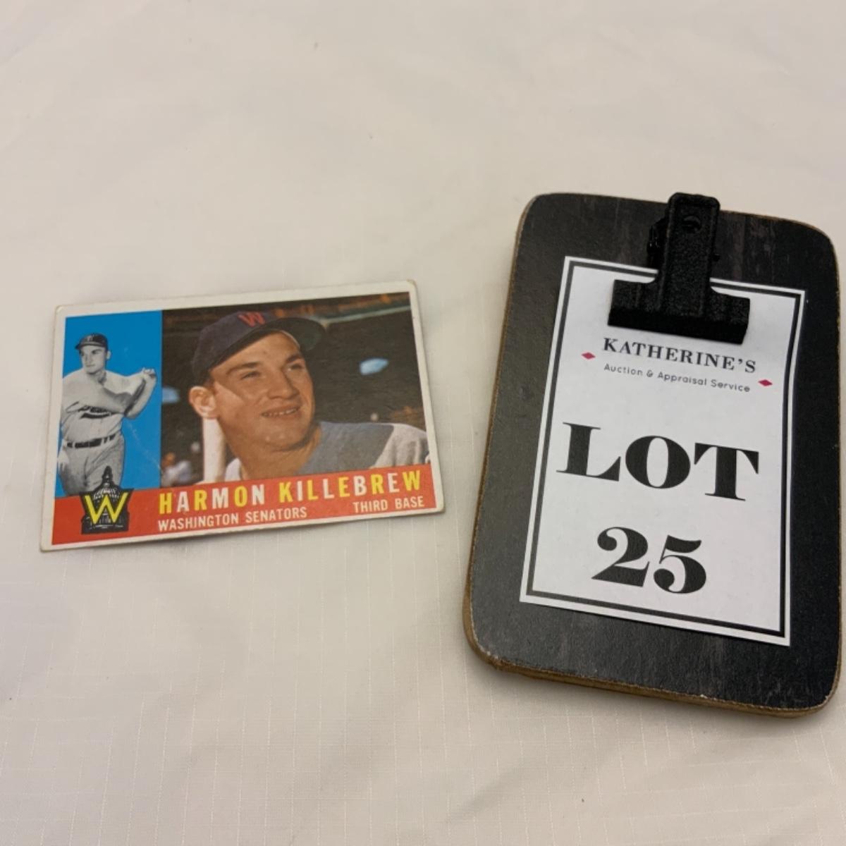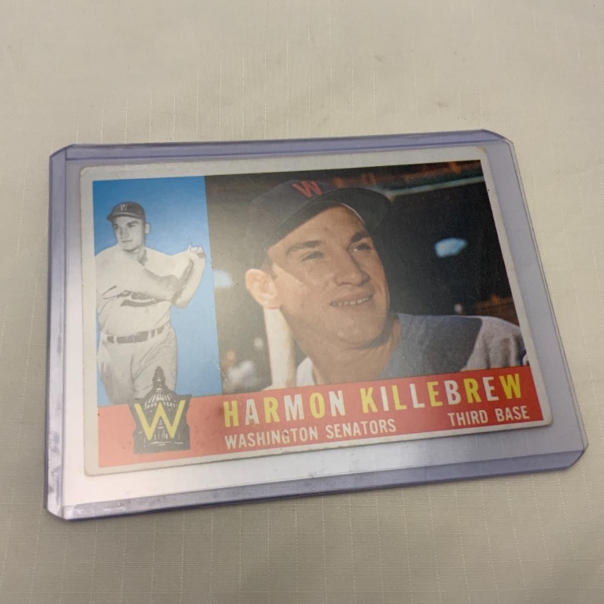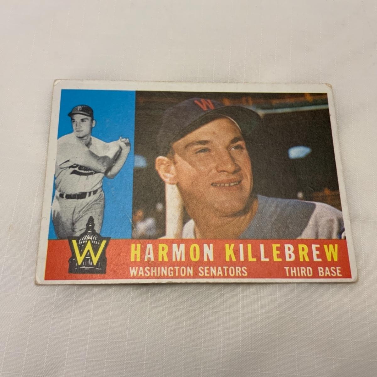 Vintage 1960 TOPPS Card #210 from the 1960 Series. Harmon Killebrew was a Hall of Fame Player for the Minnesota Twins. Card is in Very Good / Excellent condition. Card comes from the original owner. Please see photos for details and condition. ::: Shipping is available on this lot. If you require shipping you must let us know at the close of the auction. We will coordinate with you after the item has been won. Shipping fees will include insurance up to or exceeding the value of all items being mailed. If you have any questions regarding this lot please contact the auctioneer either via this website, by direct email or by phone. PICK UP TIMES and other important information can be found in the TERMS and DESCRIPTION of the auction. Please take a look for pertinent information. Thanks!