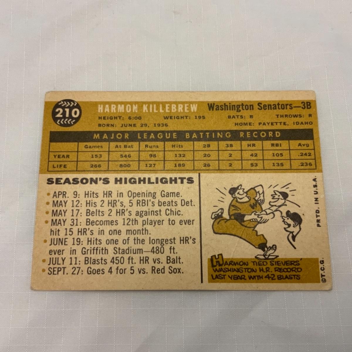 [25] VINTAGE | Harmon Killebrew | TOPPS Card #210 | 1960 | Minnesota Twins