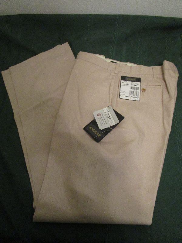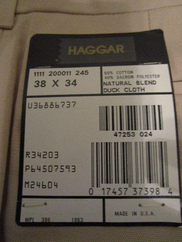 Haggar light tan slacks 38 x 34, natural blend duck cloth, 60% cotton, 40% Dacron Polyester