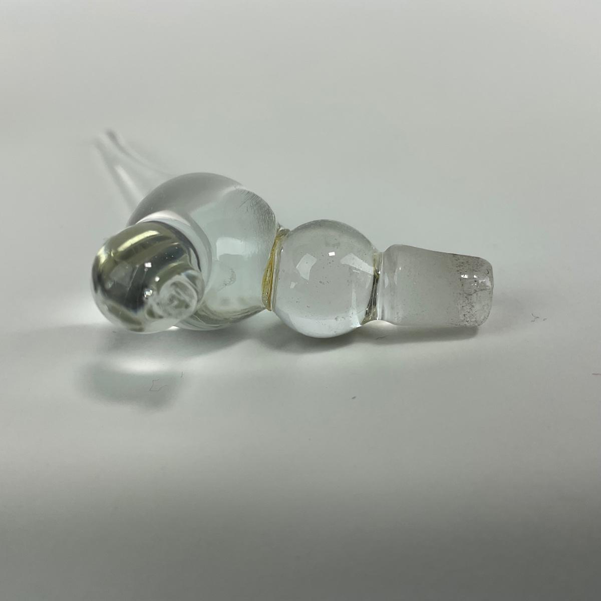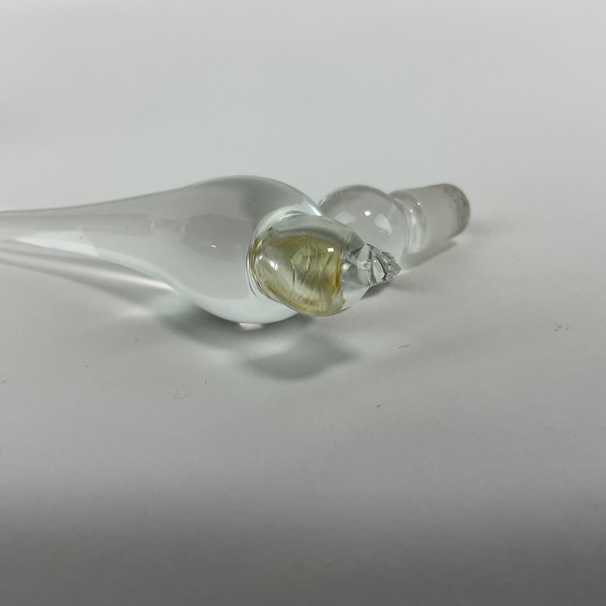 One clear glass perfume bottle with bird on the top of the stopper. This pieces does appear to have a good amount of damage possibly being re glued back together as well as having a broken beak. Please see photos for details and condition. Any condition statement is given as a courtesy to a client, is an opinion, and should not be treated as a statement of fact. Reference to condition written, oral or within a condition report shall not be regarded as a full account of condition and may not include all defects, alterations, or restorations. Absence of a condition report does not imply a lot is flawless or lacking imperfections or damage. Katherine’s Auction & Appraisal Service shall have no responsibility for any error or omission. Returns shall not be accepted on the basis of condition. ::: Shipping is available on this lot. If you require shipping you must let us know at the close of the auction. We will coordinate with you after the item has been won. Shipping fees will include insurance up to or exceeding the value of all items being mailed. If you have any questions regarding this lot please contact the auctioneer either via this website, by direct email or by phone. PICK UP TIMES and other important information can be found in the TERMS and DESCRIPTION of the auction. Please take a look for pertinent information. Thanks!