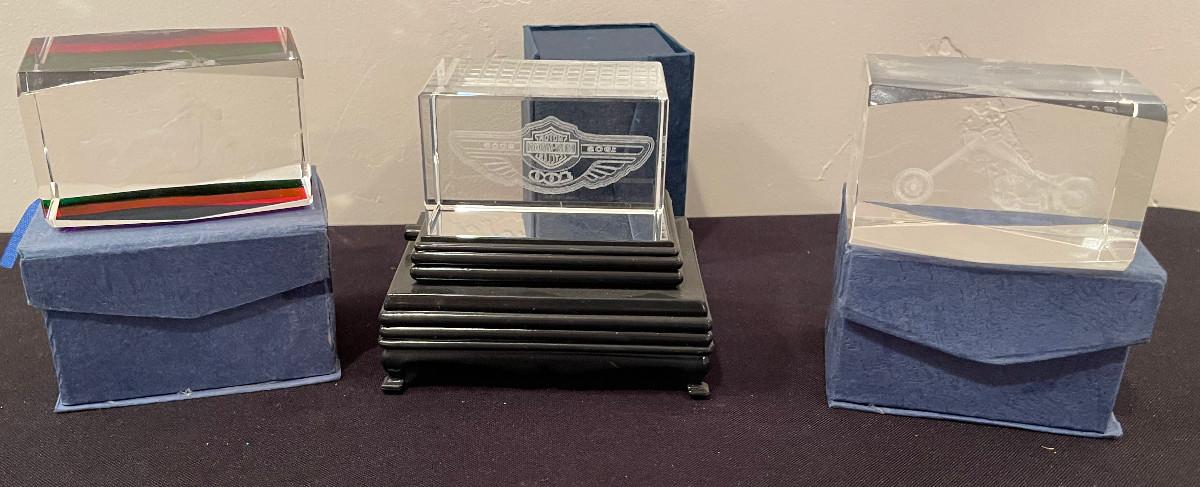 #250 Harley Davidson Glass Paper Weights Set of 3
