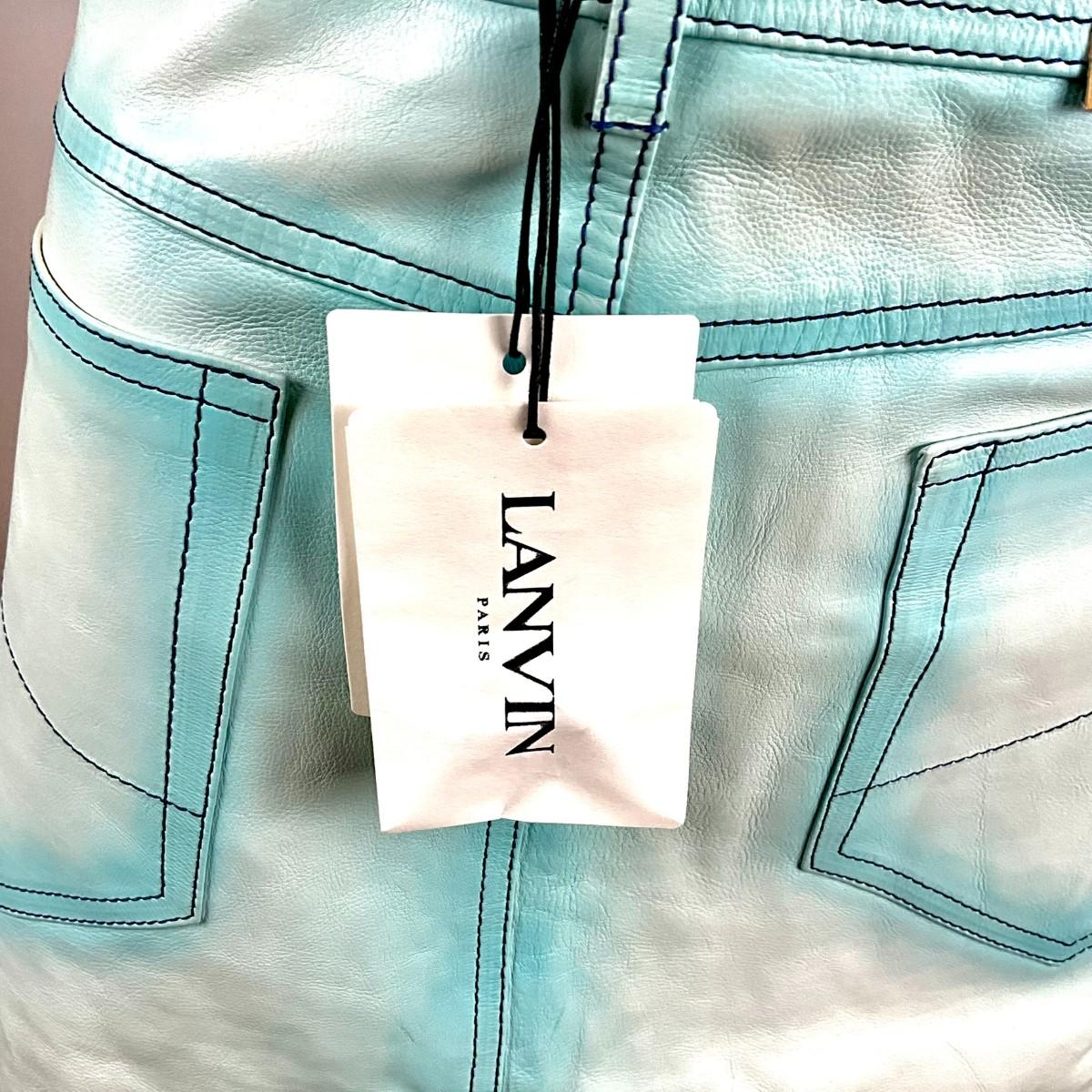 250. New with Tags LANVIN Blue Tie-Dye Leather Skirt